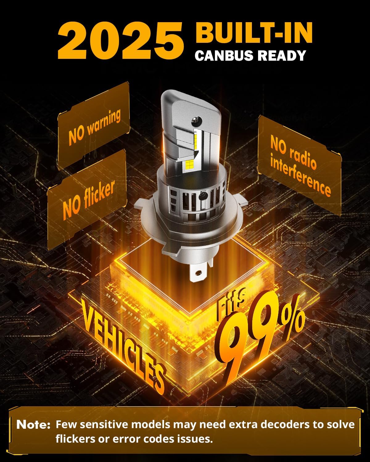 - 99% Super Compatible: Built-in intelligent decoding chips, highly compatible with 99% models' system without causing errors and flickers. Note:1% sensitive models still need decoders. Please message auxbeam to help slove the problem.