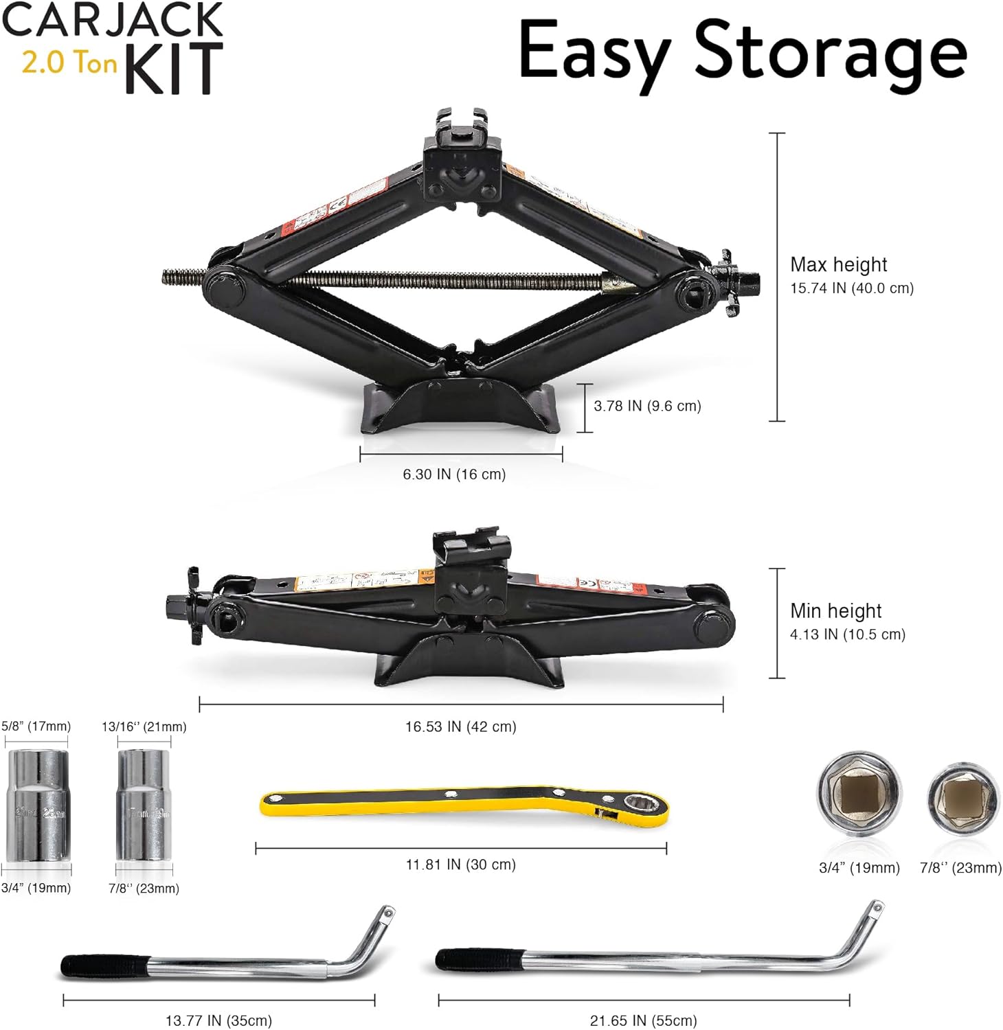Car Jack Kit | Scissor Jack for Car 2 Ton (4,400 lbs) - Tire Jack Tool Kit | Portable, Ideal for SUV and Auto - Universal Kit with Lug Wrench | Heavy Duty Material