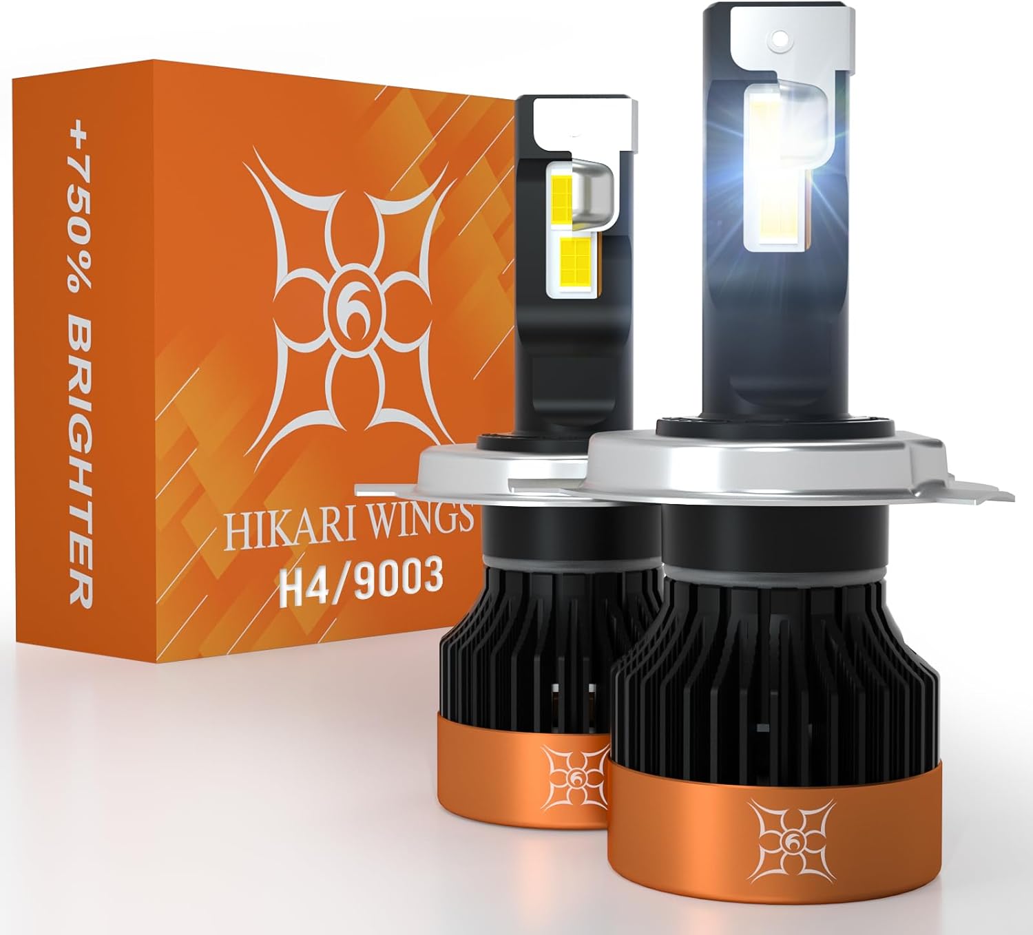 HIKARI WINGS H4/9003 LED Fog light, 30000LM Pure White 6000K LED Bulbs, Plug & Play IP68 Waterproof Pack of 2