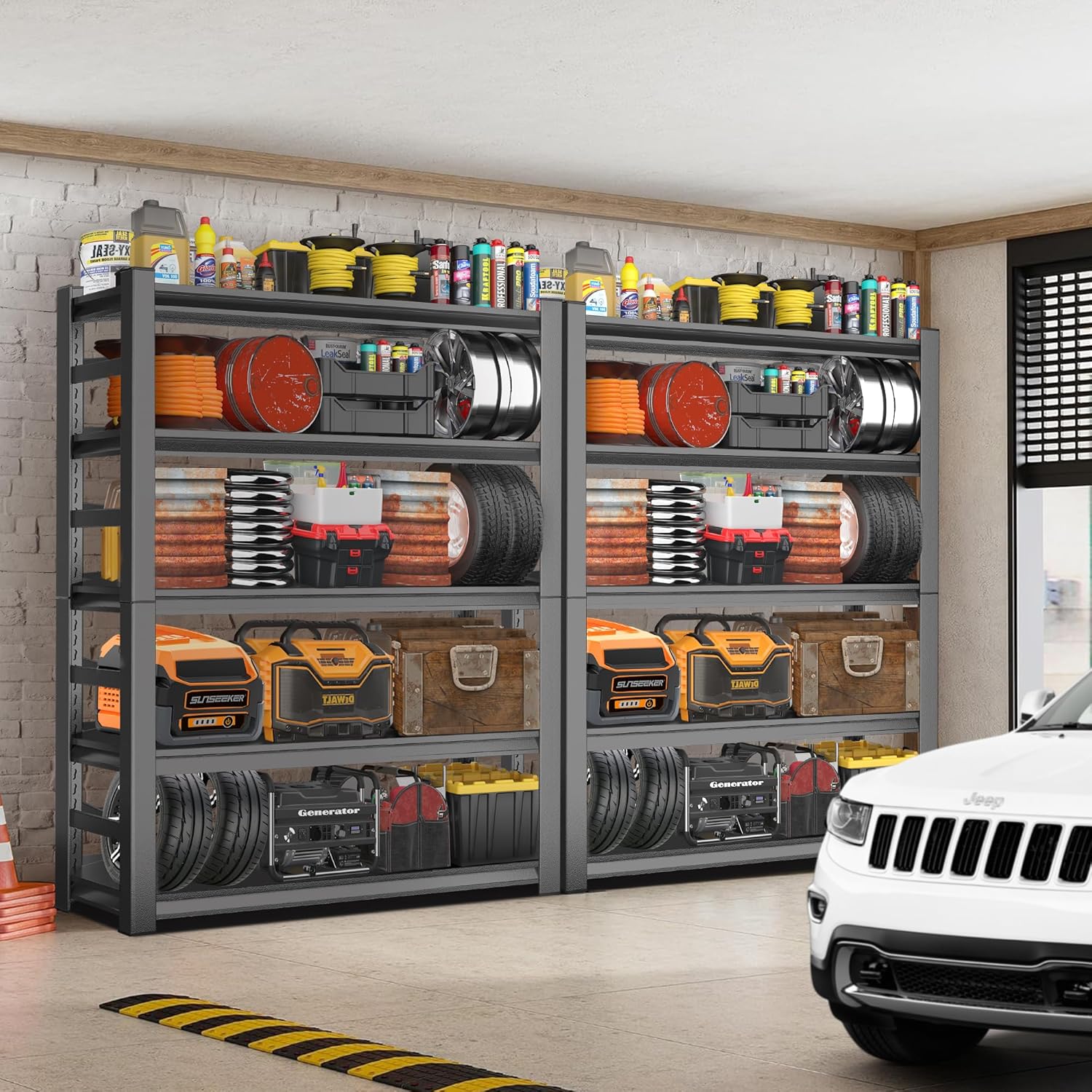 - ăGarage Shelving Heavy DutyăďźOur metal storage shelves are made of heavy-duty steel and have been upgraded to double layered columns, each with supporting ribs, and the surface of the shelves is coated with high-quality powder coating. It is not only sturdy and durable, but also ensures that the shelf maintains its appearance and performance in various environments. Each shelf can carry up to 800 pounds, and the maximum weight capacity of 4000 lbs.