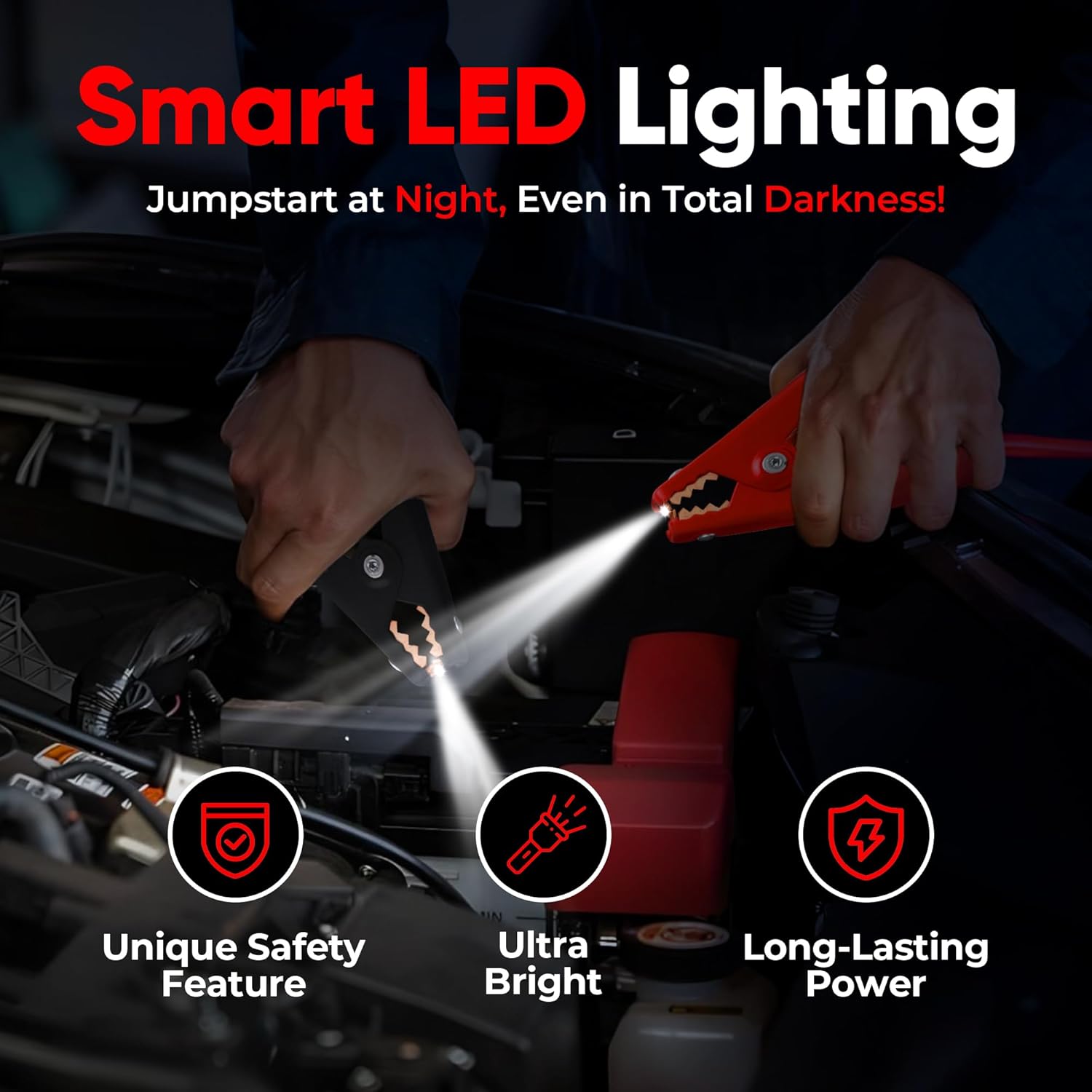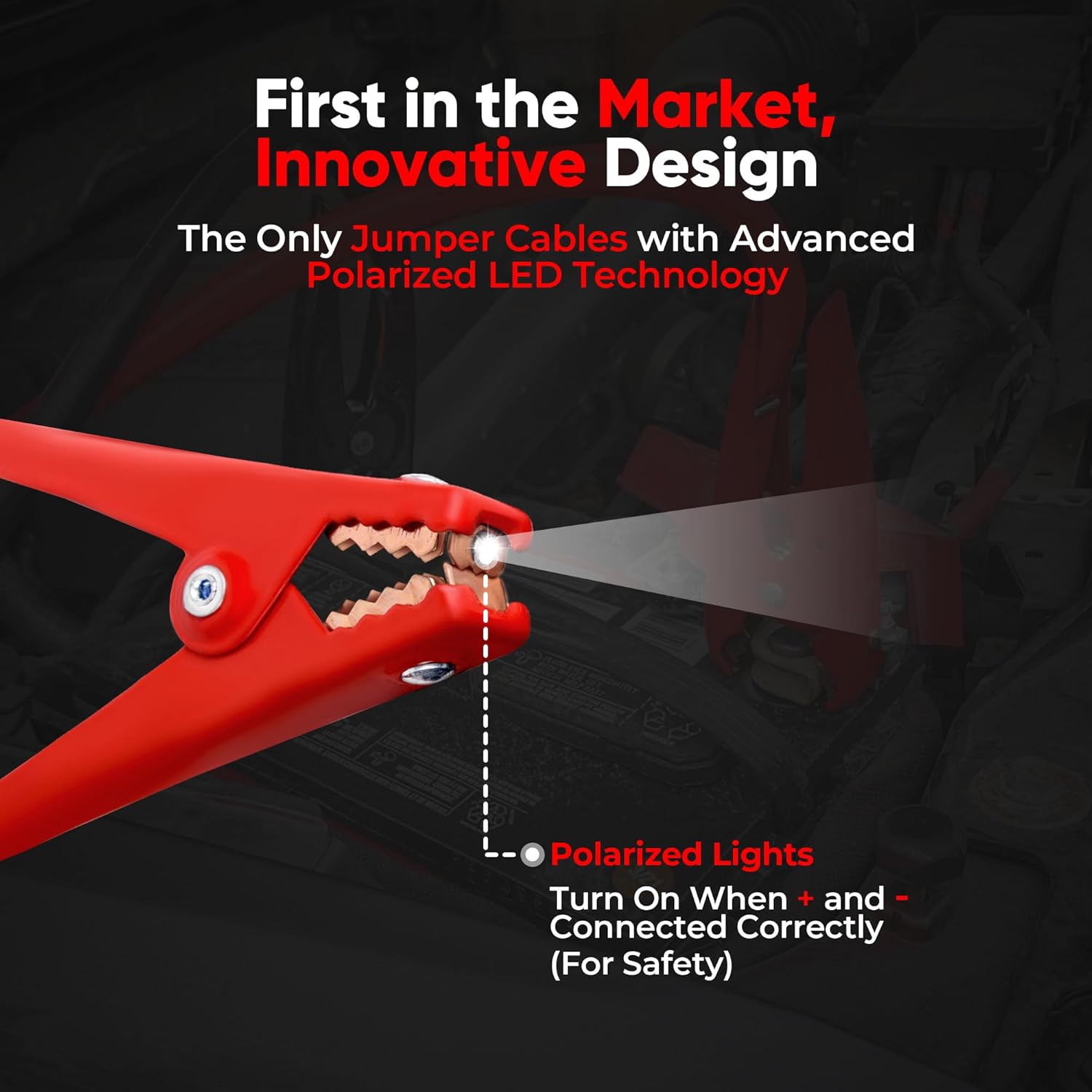 - SAFEST JUMPER CABLES AVAILABLE - These quick connect jumper cables eliminate common risks with smart safety tech. Suitable for emergencies, road trips, and winter conditions. A must-have for every car owner!