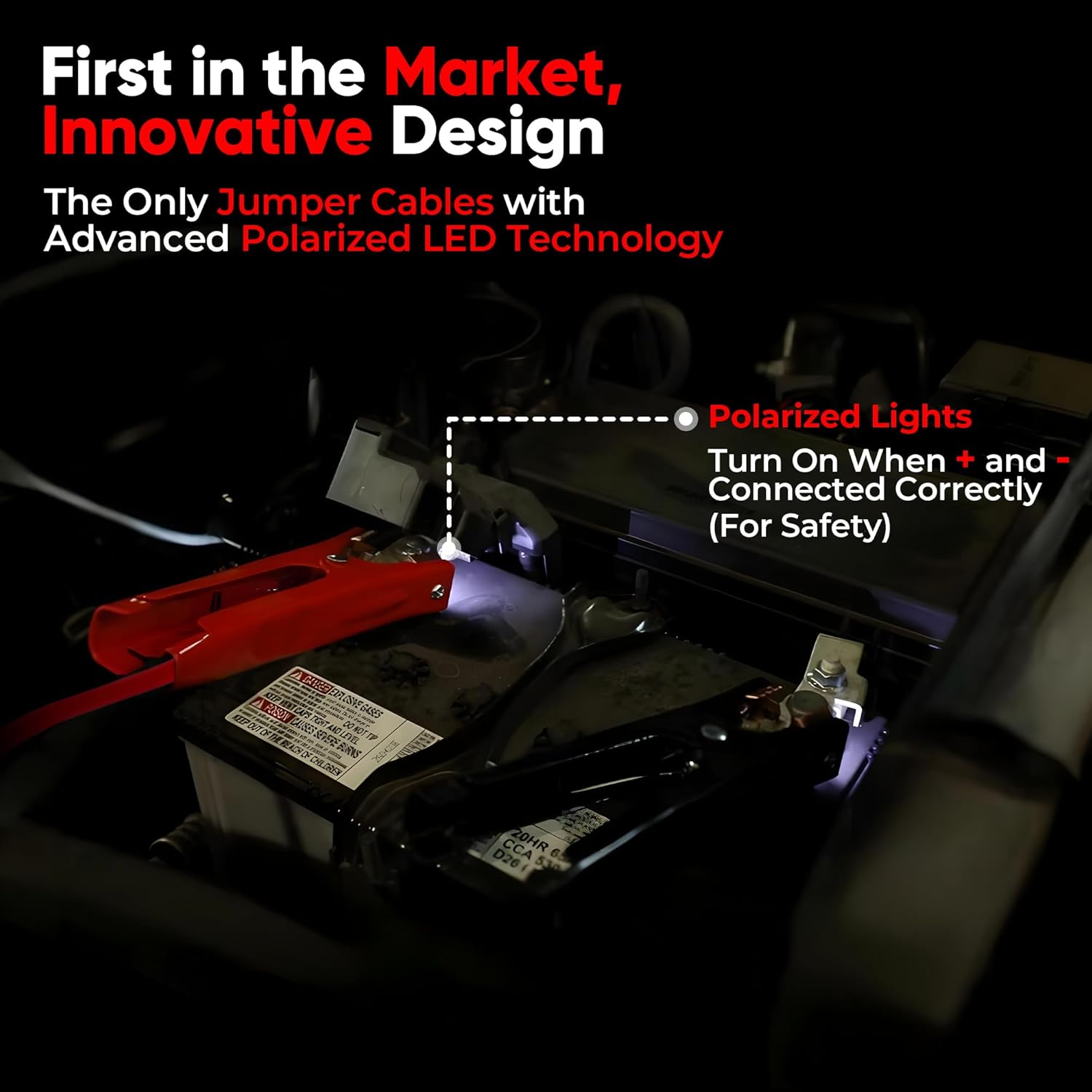 - MISCONNECTION PROTECTION - These plug in jumper cables are designed with built-in safeguards. If cables are incorrectly connected, the LED lights won’t turn off, preventing sparks & damage.