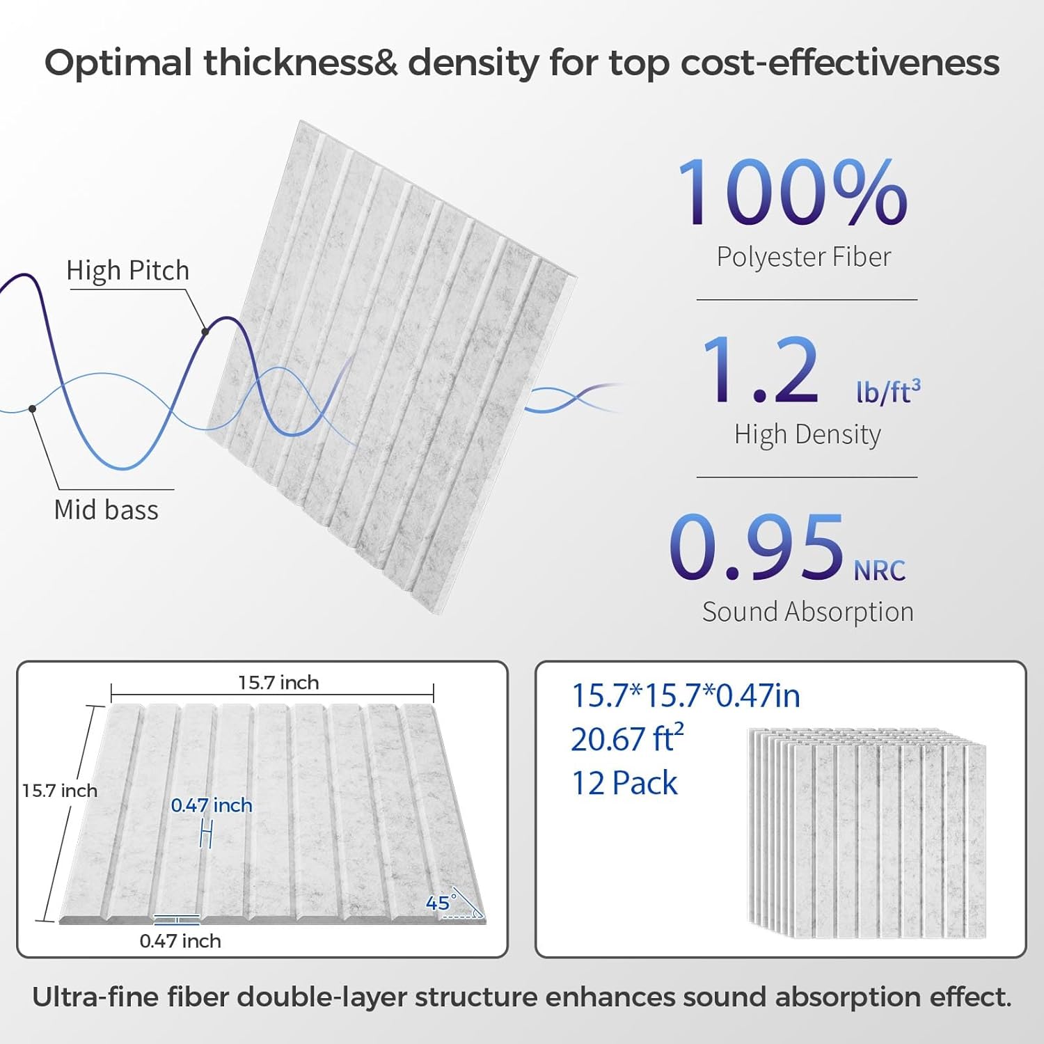 12 Pack Large Soundproof Wall Panels, 15.7 x 15.7 x 0.47 in Sound Proof Foam Panels for Walls, 1.2lb/ft³ High Density, Thicker 0.47in, Acoustic Panels, Sound Dampening Panels Gray