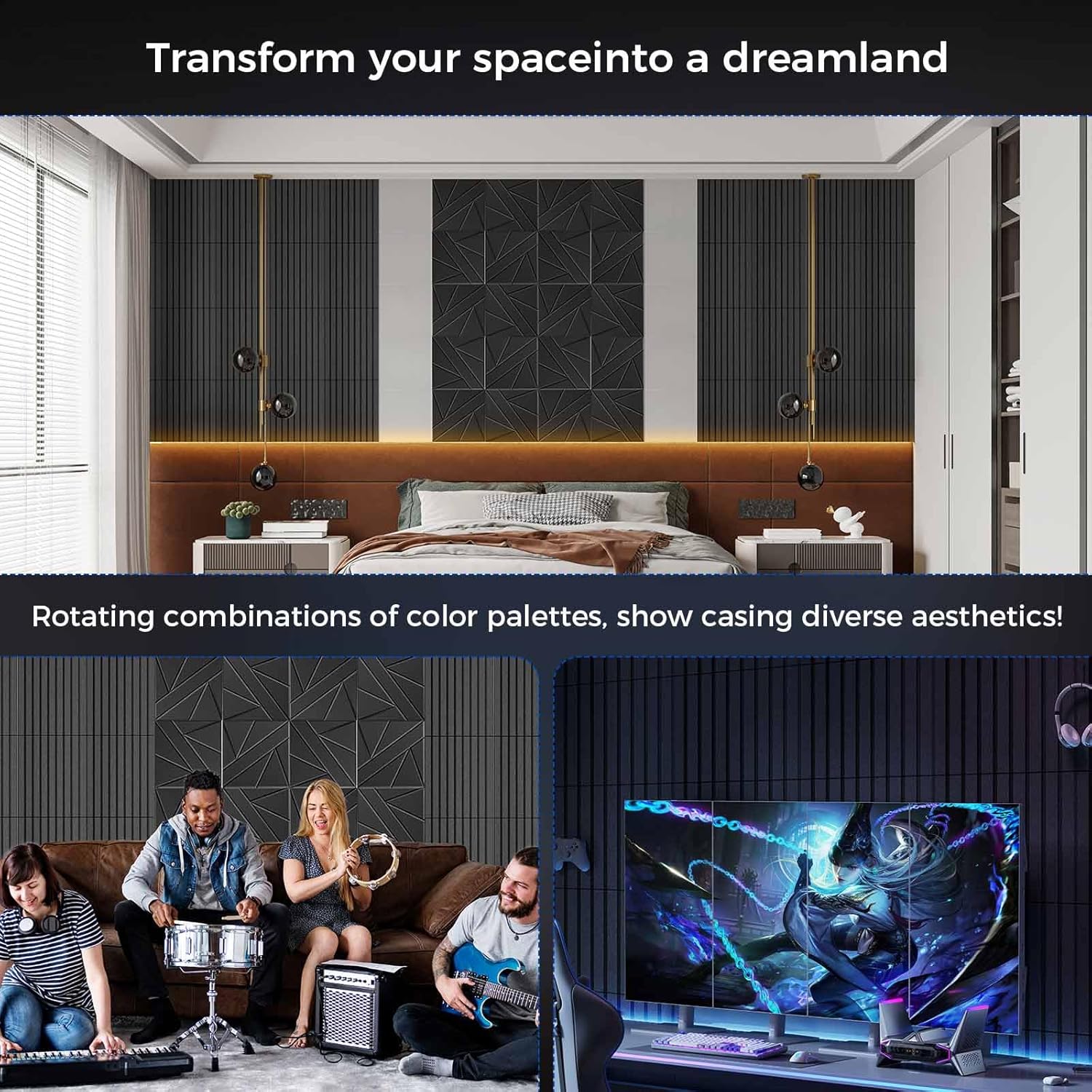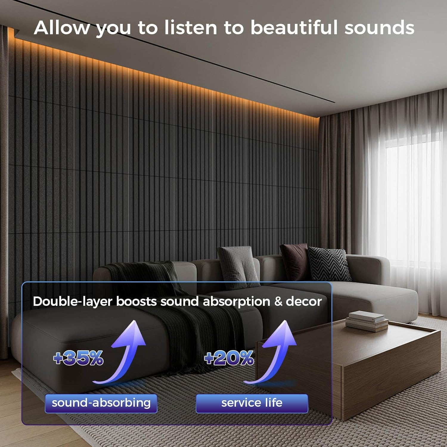 - 【Wide Range of Uses】: The elegant and generous lines of the decorative wall panels not only enhance the visual effect of the space, but we also provide a variety of color options, allowing you to create a unique space atmosphere through clever combinations, perfectly matching your various decoration styles. Noise cancelling wall panels is widely used in various scenarios such as musical instrument rooms, podcasts, recording studios, piano rooms, cinemas, living rooms, bedrooms, offices, etc