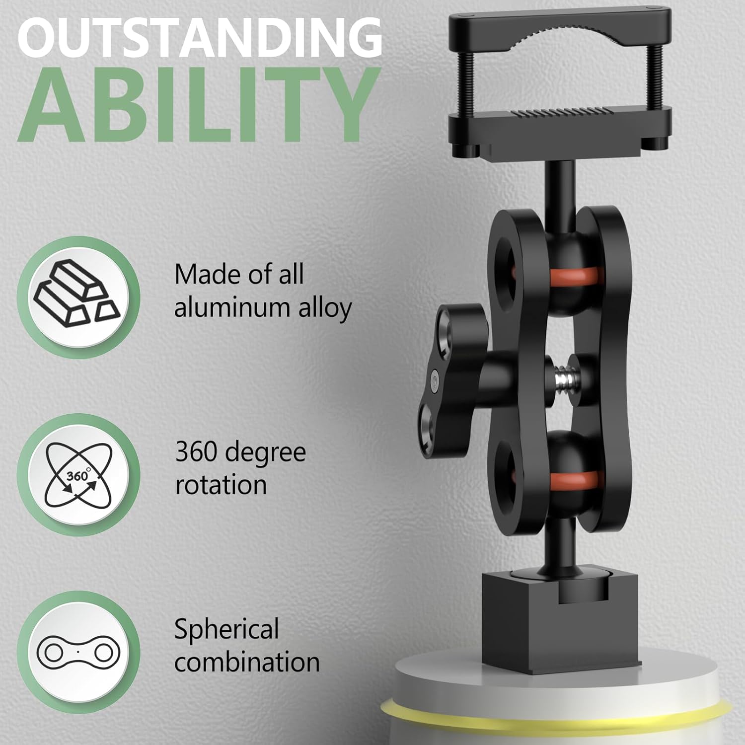 - Aluminum rearview mirror bracket has strong expandability, with two 1/4 screw holes at the handle that can be used to expand other devices.360 ° rotating ball head design, flexible adjustment, ensuring the best viewing angle while driving.