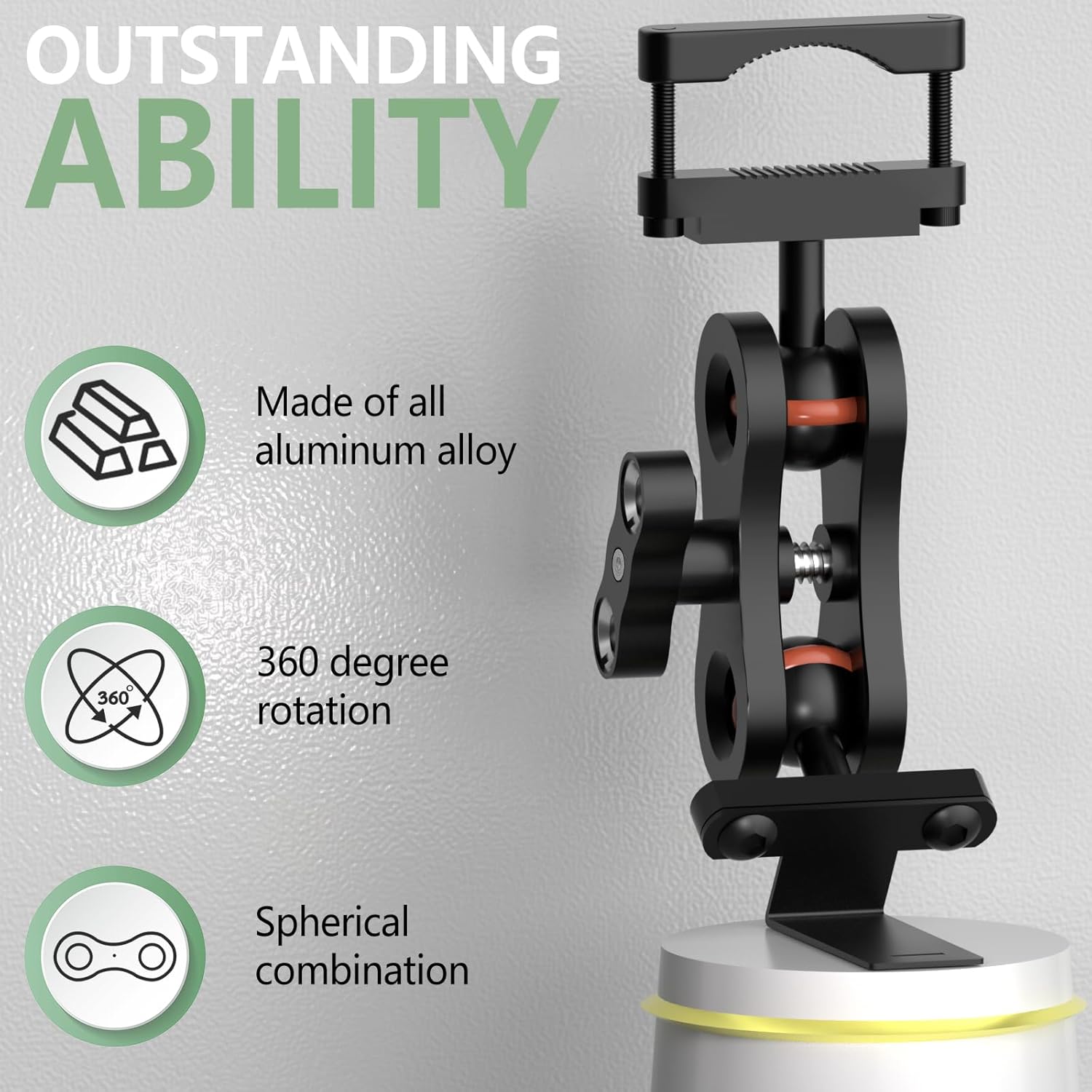 - Aluminum rearview mirror bracket has strong expandability, with two 1/4 screw holes at the handle that can be used to expand other devices.360 °rotating ball head design, flexible adjustment, ensuring the best viewing angle while driving.