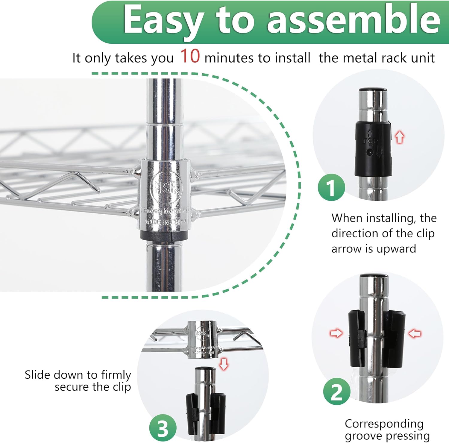 - Easy and Quick Assembly: With simple instructions and a user-friendly design, this wire shelving can be assembled quickly without the need for complicated tools. Spend less time setting up and more time organizing your space. Enjoy a hassle-free installation process with a sturdy and functional shelf in no time.