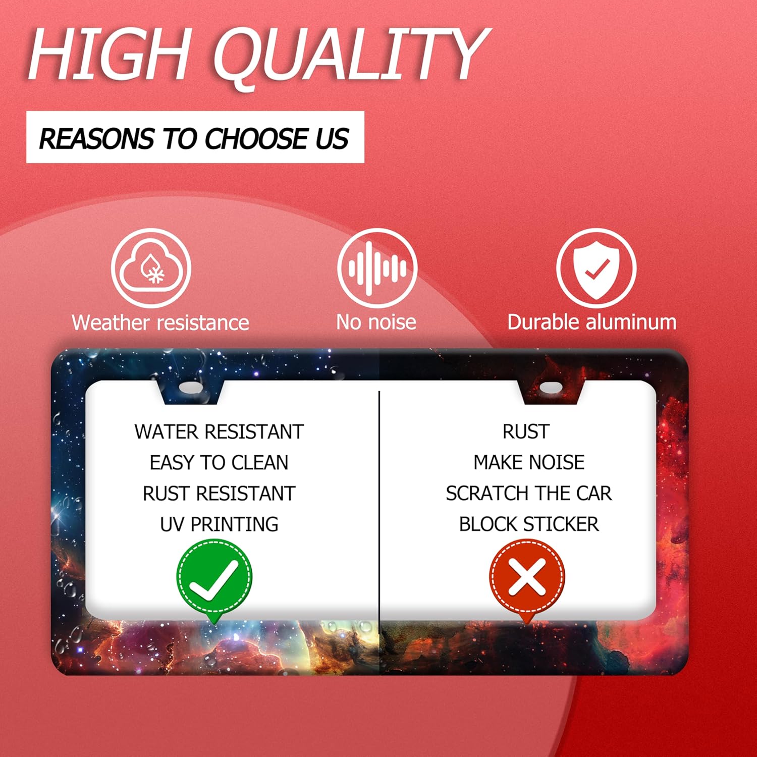 Beautiful Galaxy License Plate Frame Funny Universe License Plate Frames Stainless Steel Accessories Cars Decor with 2 Holes and Screws Fits Standard Us Ca Vehicles License Plate Holder 12.2 X 6 Inch