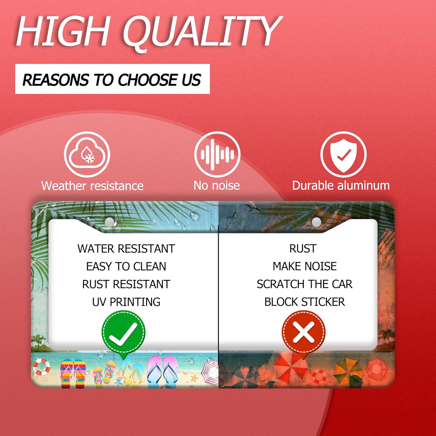 Beach Flip Flops License Plate Frame Funny Seaside License Plate Frames Stainless Steel Accessories Cars Decor with 2 Holes and Screws Fits Standard Us Ca Vehicles License Plate Holder 12.2 X 6 Inch