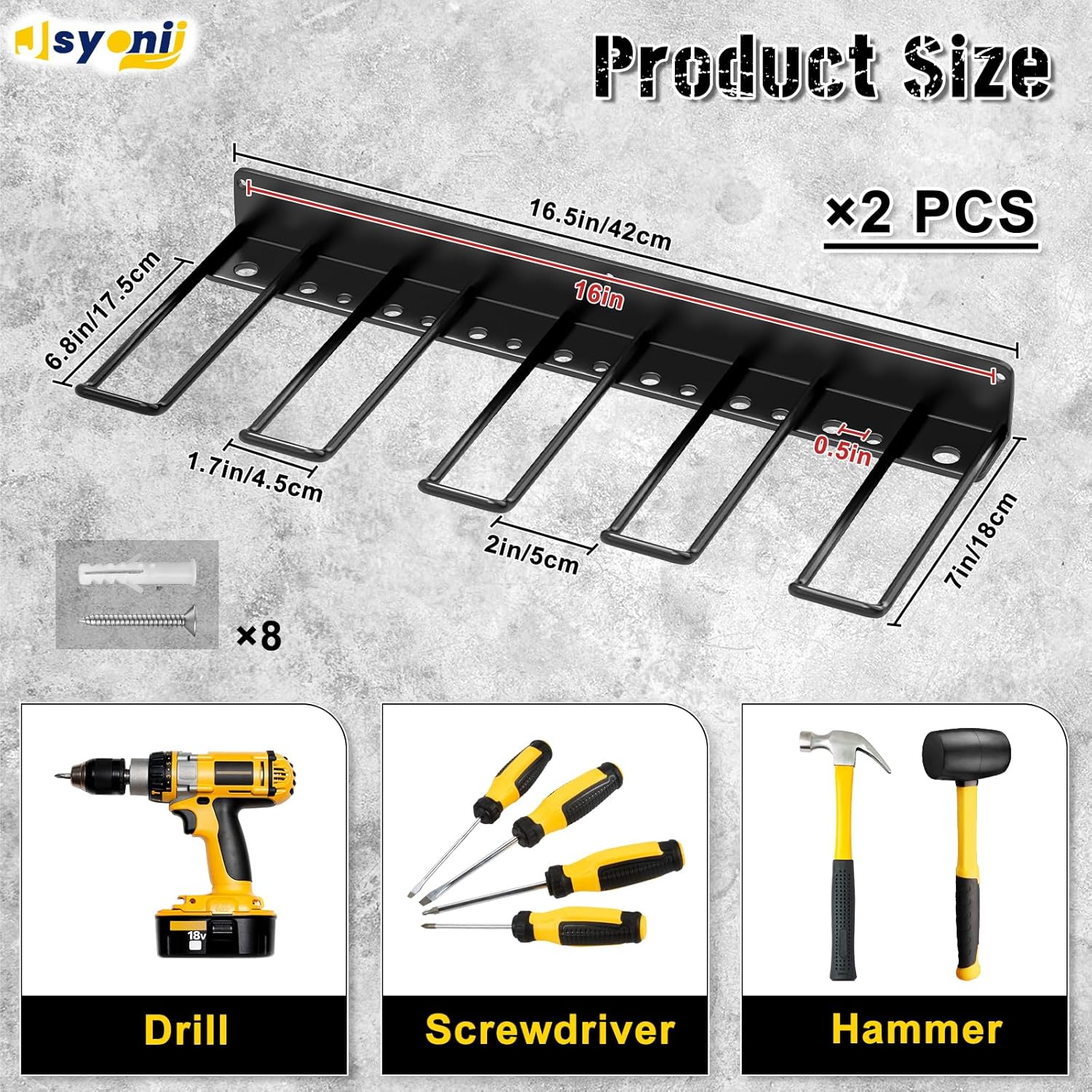 - Perfect Help for Garage:Each hook has a curved end to prevent the drill from falling. The garage organizer and storage rack allows you to keep your drill and battery charger neatly organized for garages, homes, workshops, sheds, backyard stores and more