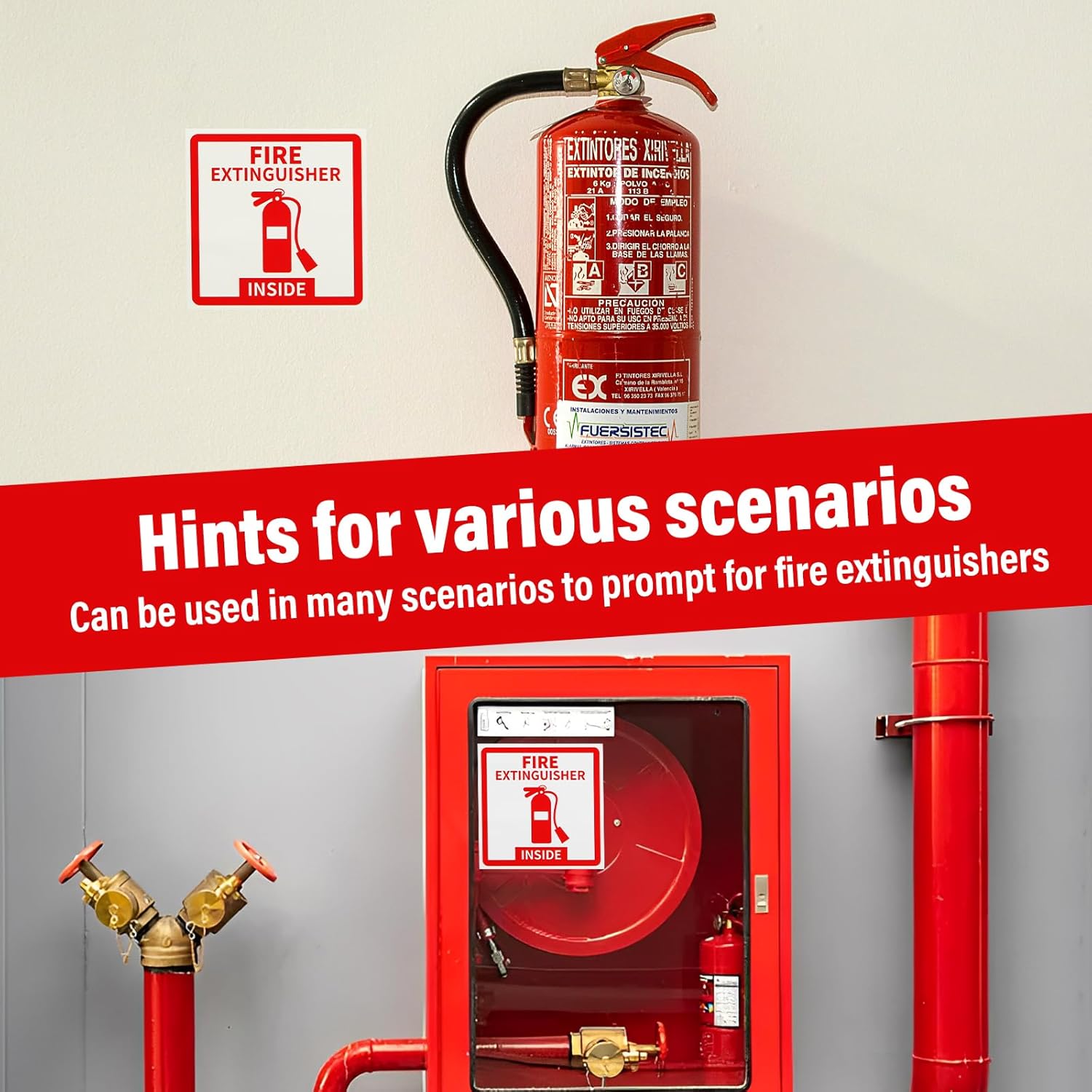 Madrigal Fire Extinguisher Inside Sticker Sign,2Pack 3x3" Self-Adhesive Vinyl, Weatherproof & UV Protected for Cars, Trailers, Rv's, Trucks and Vehicles, Red on White