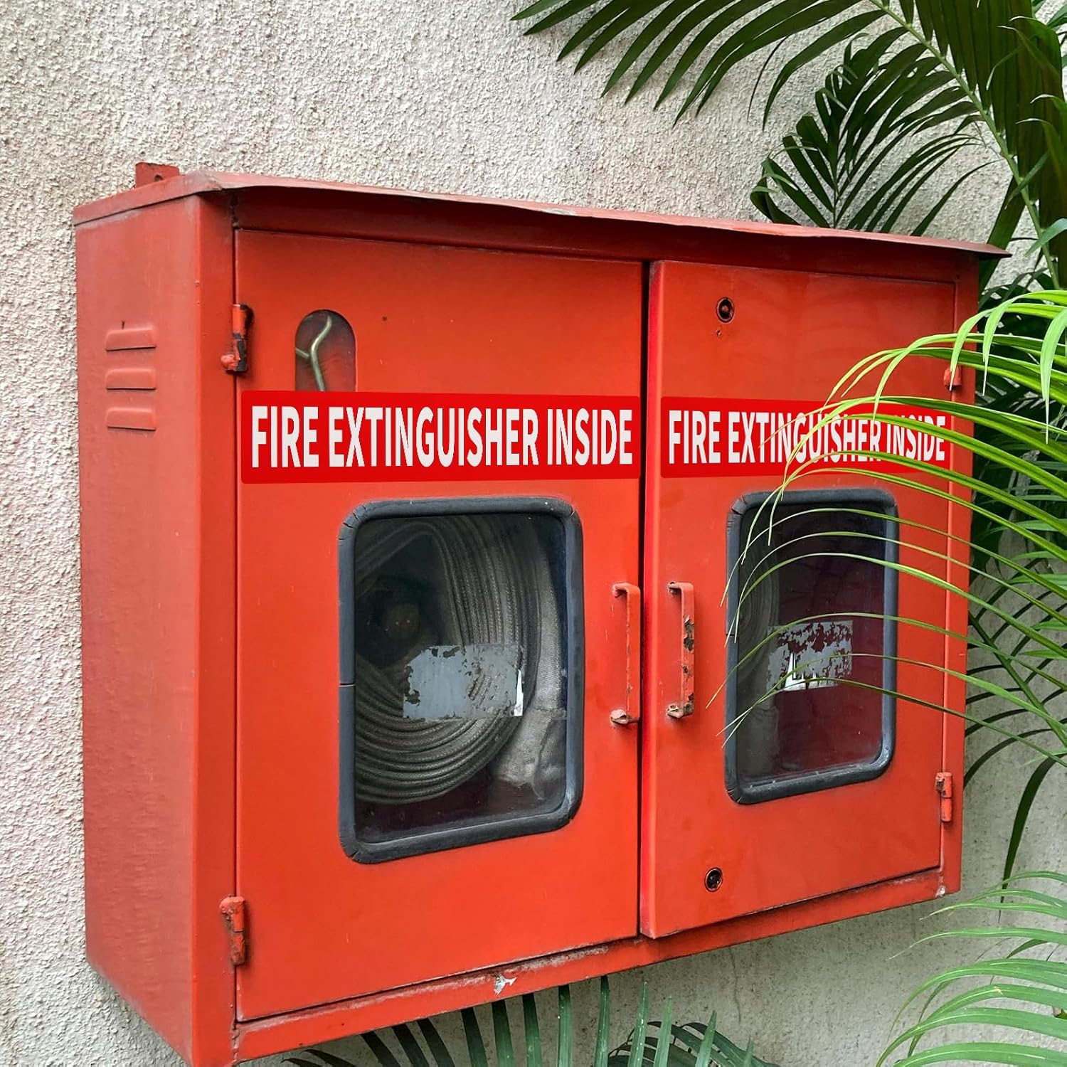 Madrigal Fire Extinguisher Inside Sticker Sign,2Pack 12x2.5" Self-Adhesive Vinyl, Weatherproof & UV Protected for Cars, Trailers, Rv's, Trucks and Vehicles, Red on White
