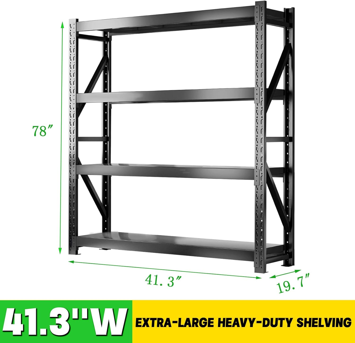 3000LBS Heavy Duty Storage Shelves,78''H Metal Garage Shelving, 4-Tier Adjustable Garage Organization Shelving Units, Industrial Shelving for Warehouse,Workshop- Classic Black