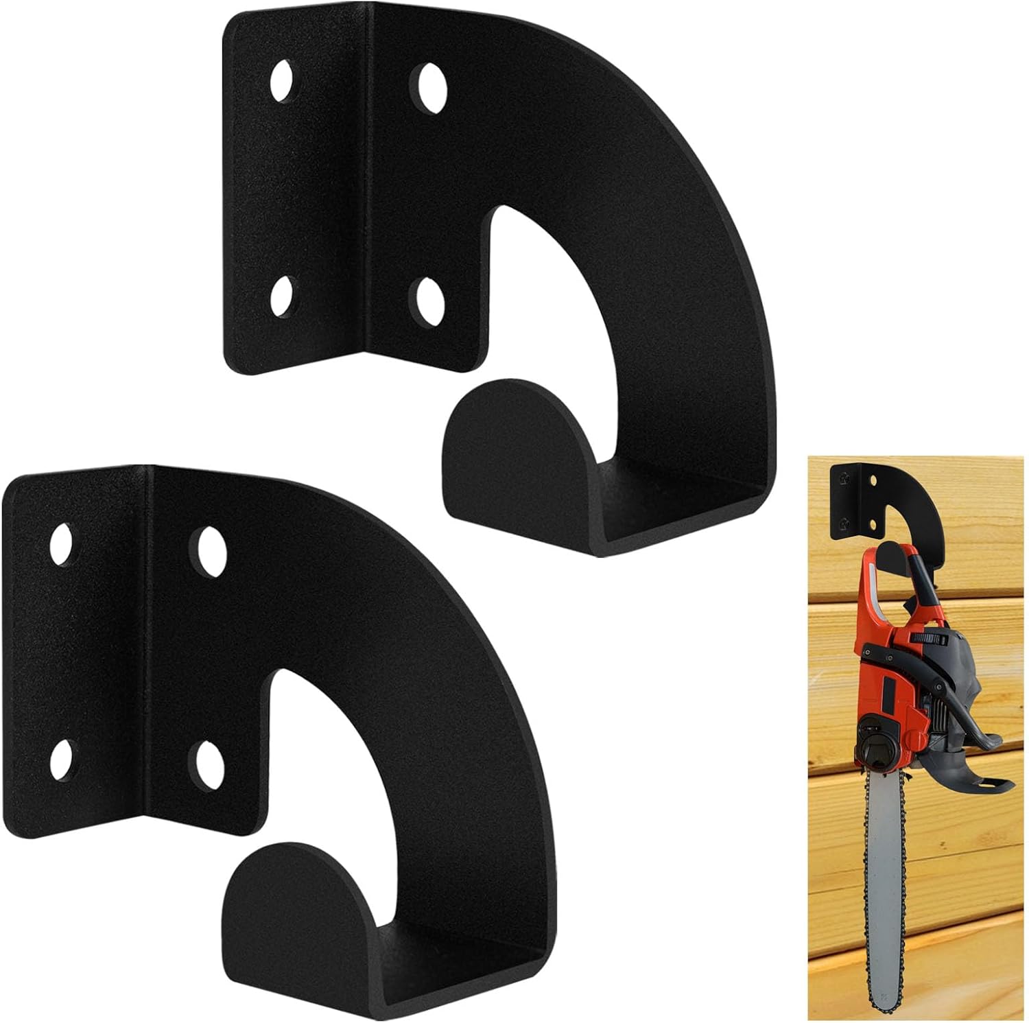 2PCS Chainsaw Hanger, Heavy Duty Chainsaw Wall Mount Holder, Organizer Mounted Chainsaw Rack, Chain Saw Hanger for Garden, Garage, Workshop, Black Metal