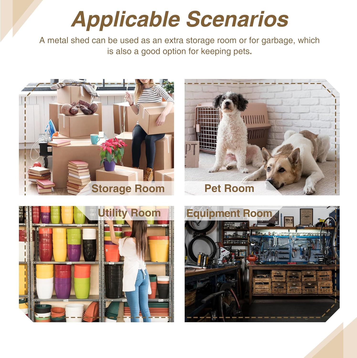 - 【Stay Organized Outdoors】Enhance your yard, basement, or garage with this backyard shed, offering ample space to neatly store waste and bulky equipment. Keep everything well-organized and within easy reach.