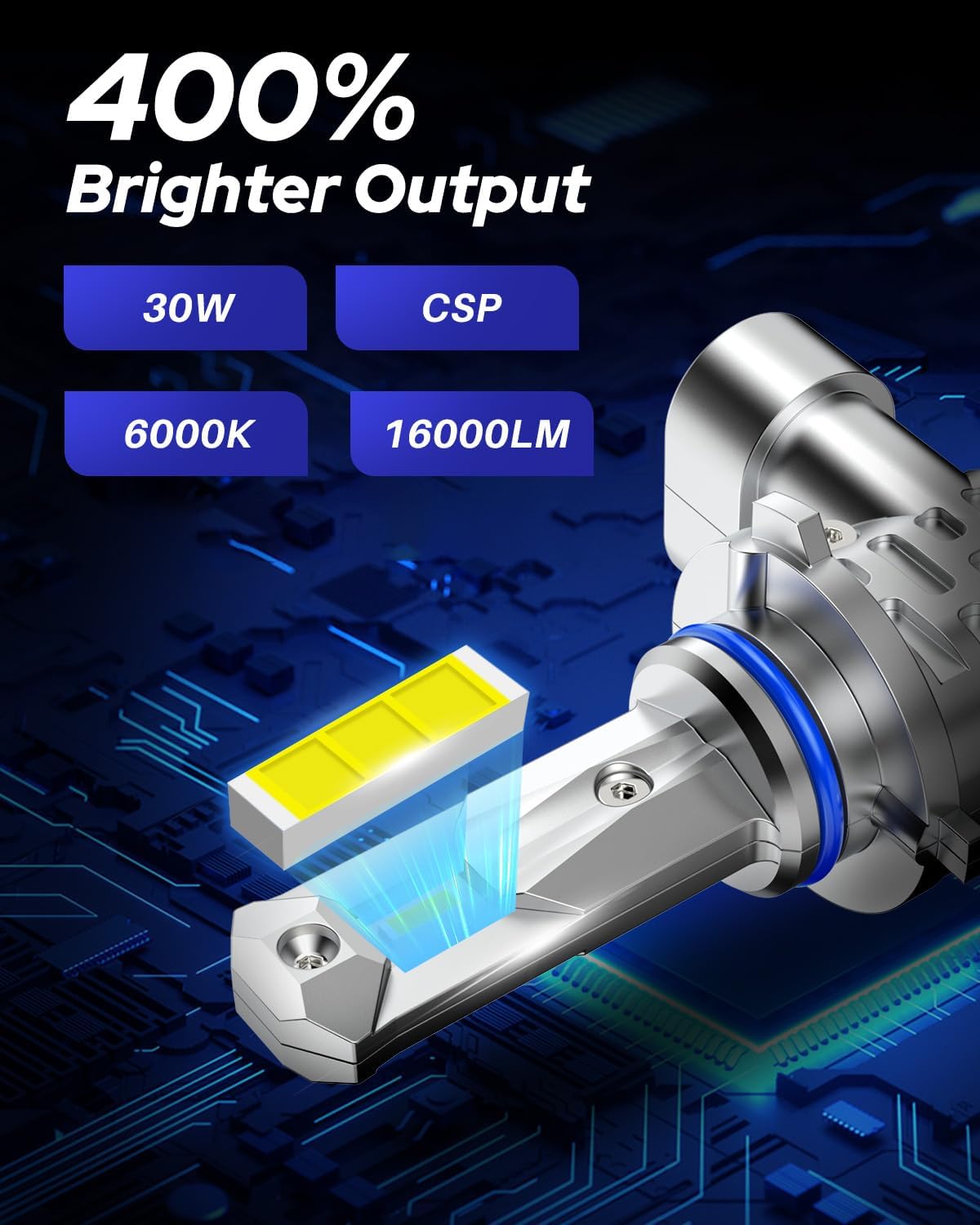 - Huge Improvement in Visibility: AUTOONE 9005 led lights are equipped with high luminous efficacy CSP chips. And 1:1 halogen 9005/hb3 bulbs’ beam pattern, spread out the light more to help in the side and front vision but no endangering others. Safer and bright upgrade