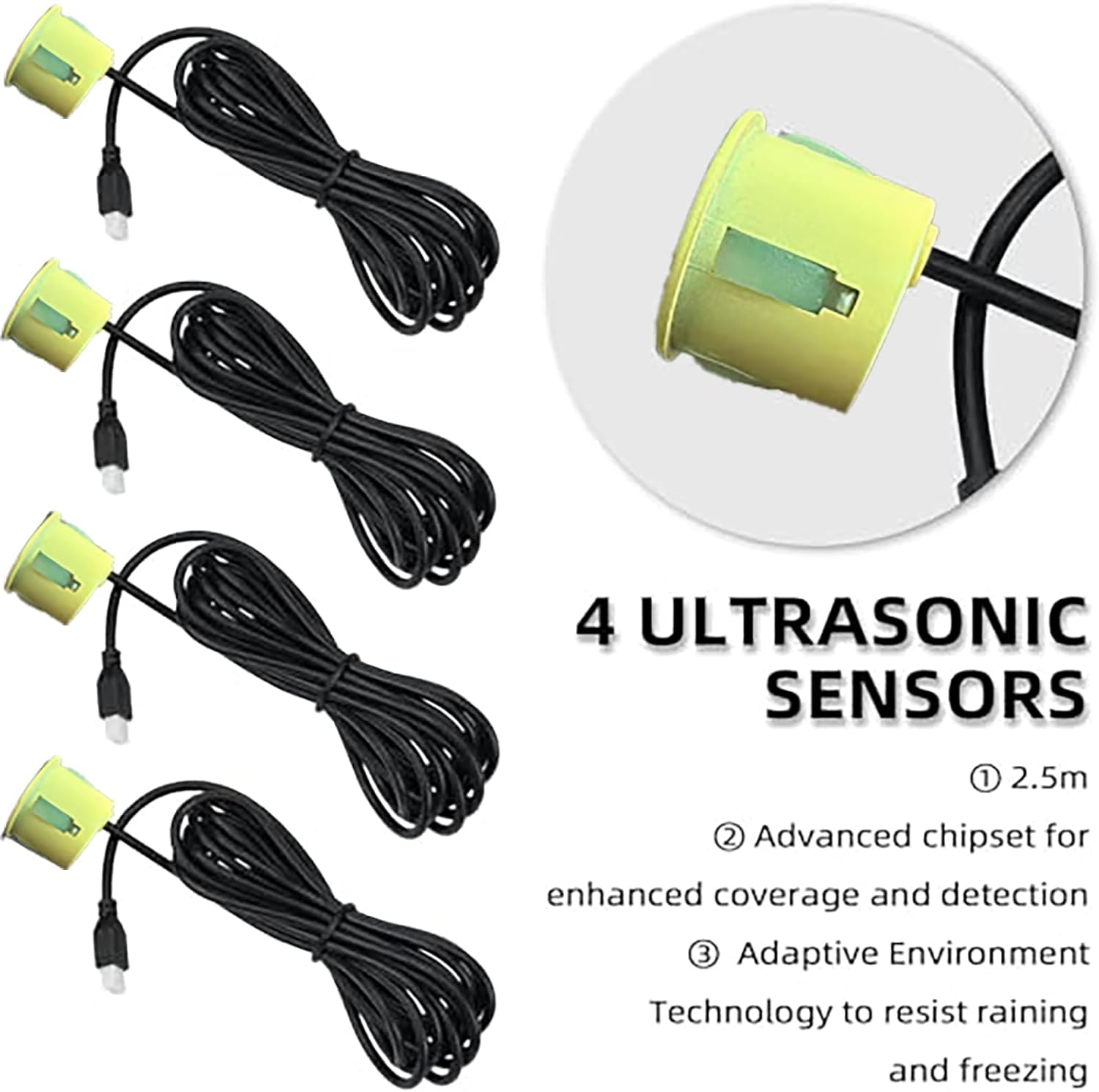 Parking Sensor Kit Backup Sensor Kit Reverse Sensor for Car 16 Color Options for Probes Adjustable Alarm Volume Professional Sensore de Reversa para Carro Safe Driving Assistant LightYellow