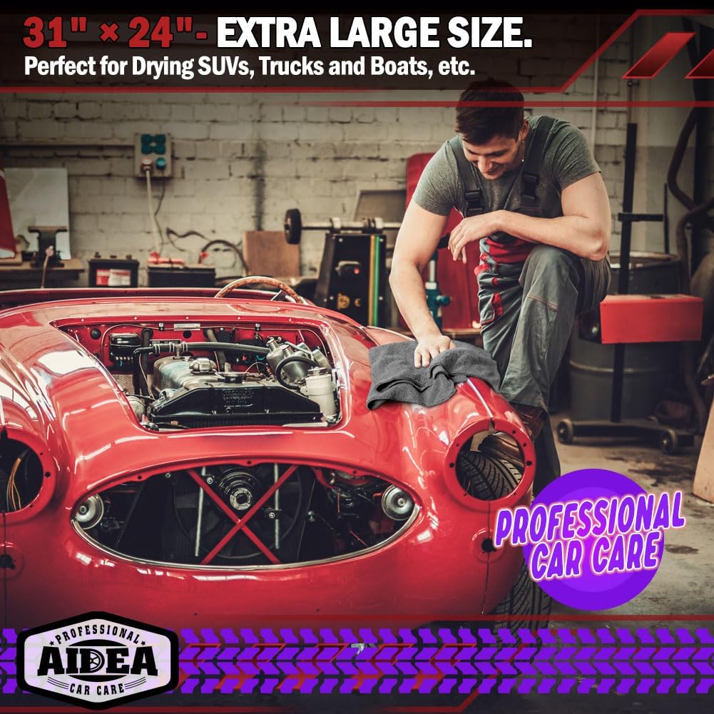 - Professional-Grade Drying: Experience professional-grade drying with our AIDEA microfiber dryer towel; features over 300,000 fibers per square inch; absorbs up to twenty times its weight in liquid; effortlessly and safely dries your car, leaving no stains or streaks behind