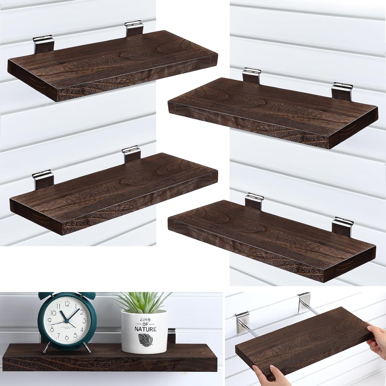 - Easy to Install: each wood slatwall shelf comes with 2 metal slatwall hooks, making installation a breeze; You can easily set it up on any slatwall, creating a convenient and space-saving storage system within minutes
