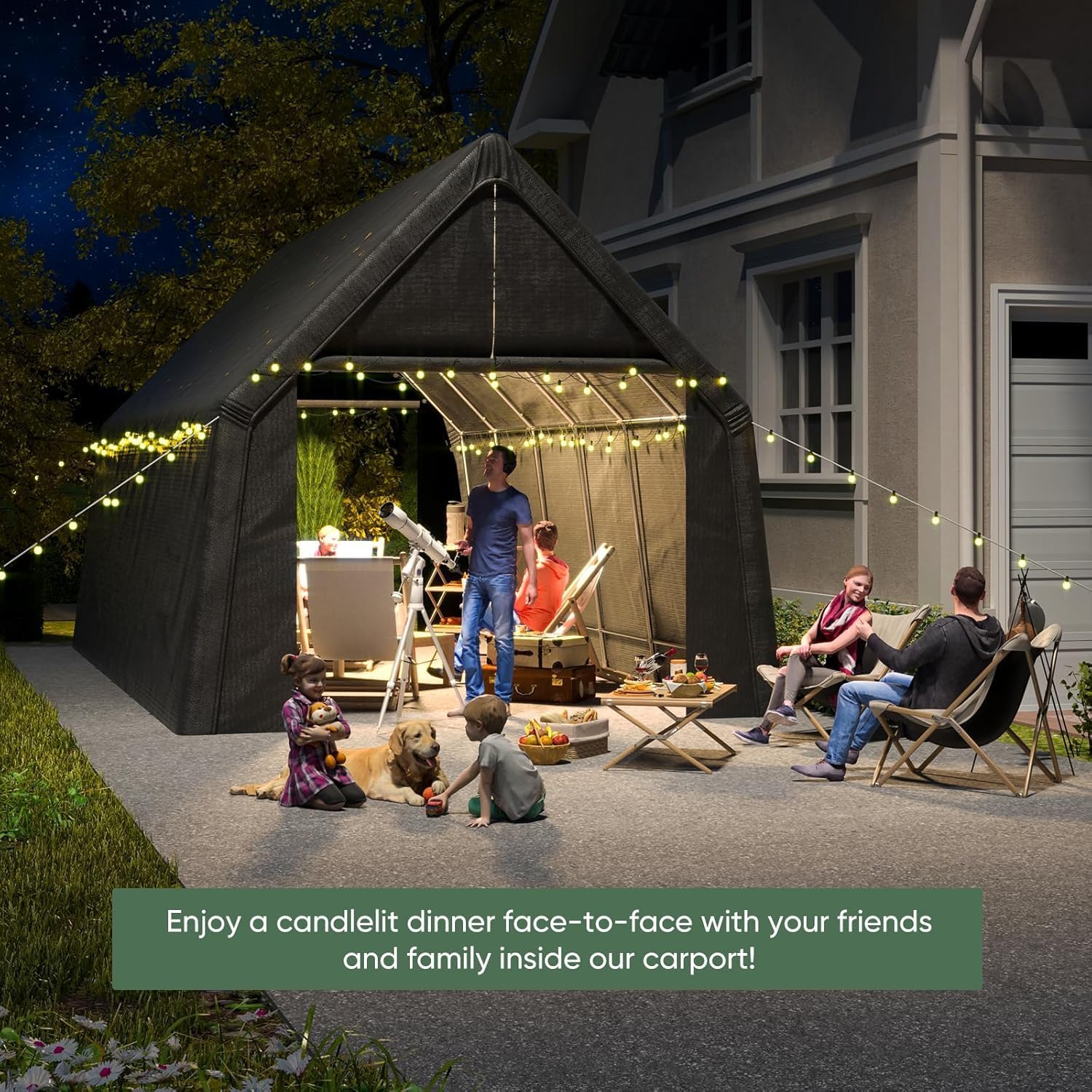 - 【Multi-functional Outdoor Shed】: Is carport just for parking cars or storing other items? No, it just needs a little decoration (such as hanging colored lights), it can be used for holiday celebrations, friend gatherings, family candlelight dinners etc. WELYAS carport canopy ,the second small HOUSE in our family!