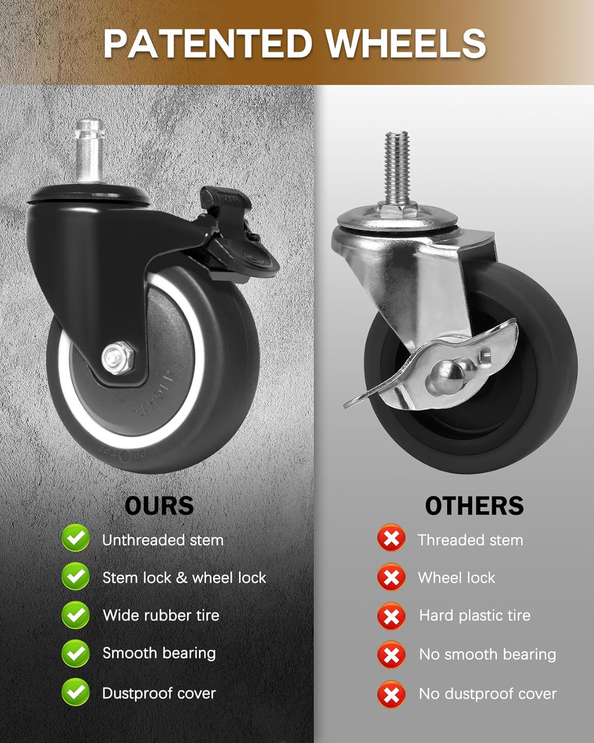 - Innovative Wheels: No loose threaded wheels; the 3-inch rubber tires ensure smooth movement with minimal noise; double brakes provide secure stopping that's easy to operate.