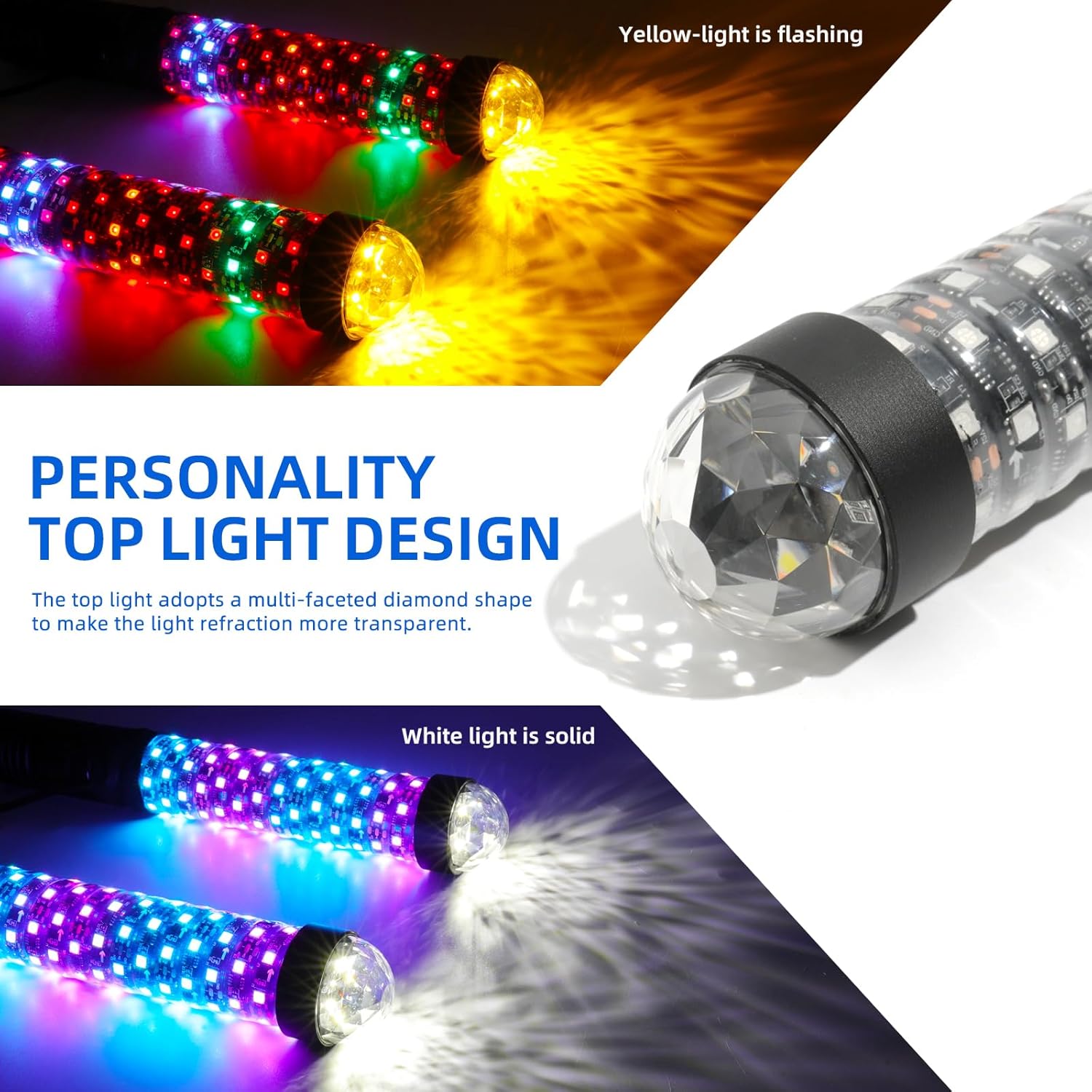 - ăStrobe Light FunctionăDREAMIZER new upgraded fat whip light is equippped with strobe light,which will emit high brightness white light and yellow light,combining with a bright RGBW whip light,adding more cool for your riding,and providing exceptional visibility during nighttime rides, foggy weather, or low-light environments, keeping you and your vehicle noticeable.