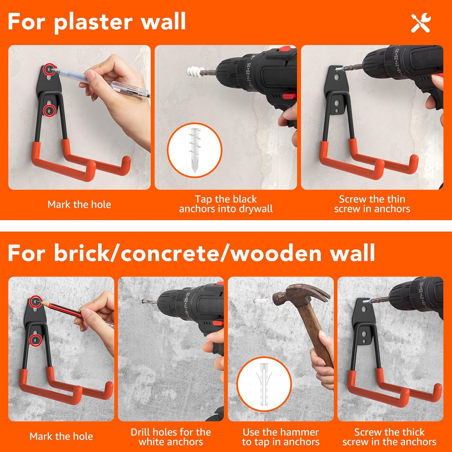- 【Easy to install】Drill. Knock. Screw, three simple steps to complete the installation, can be used for concrete walls, brick walls, wooden walls and other most of the wall