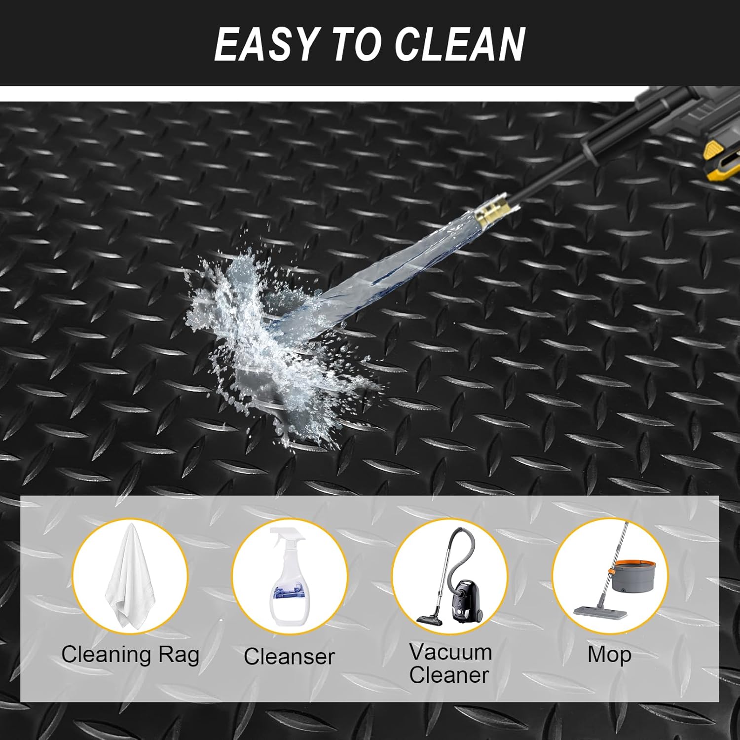 - Waterproof & Effortless Cleaning: Stain-resistant PVC repels oil, grease, and mud. Simply wipe with a cloth, hose down, or vacuum for a like-new finish—no harsh chemicals needed.