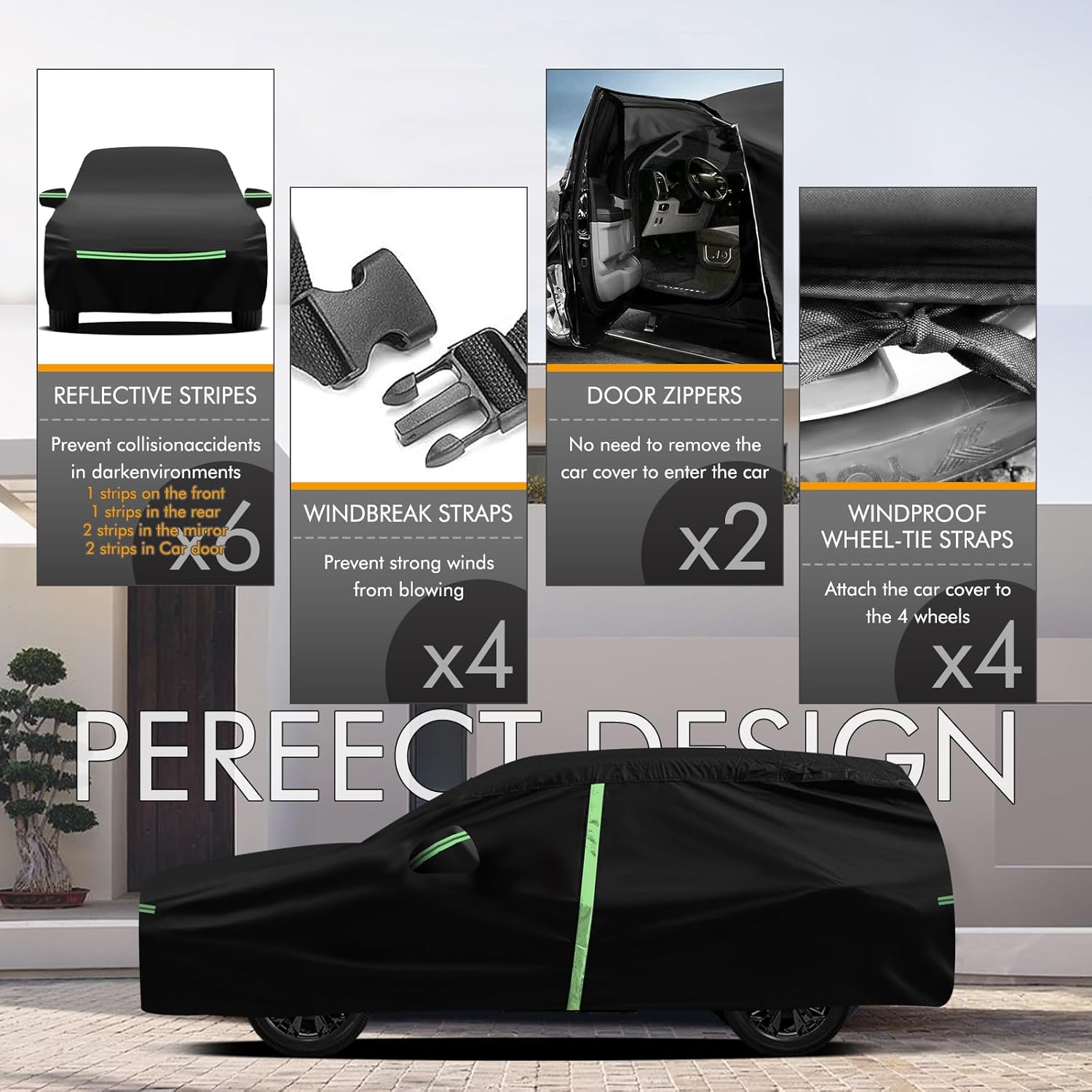 Car Cover for Honda CRV 1997-2025, Toyota RAV4 1996-2025, 210D Outdoor Waterproof UV Protection, Rain Sun Snow Protector with Cotton Layer, Zipper Door, Reflective Strip, Storage Bag