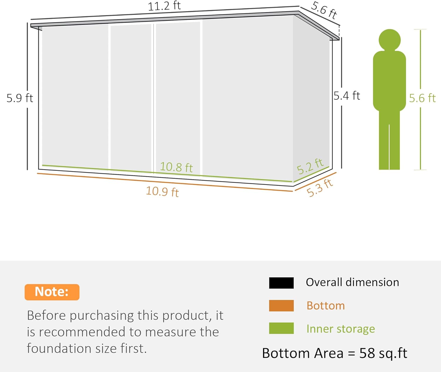 Outsunny 11' x 6' Outdoor Storage Shed, Galvanized Metal Utility Garden Tool House, 2 Vents and Lockable Door for Backyard, Bike, Patio, Garage, Lawn, Dark Gray