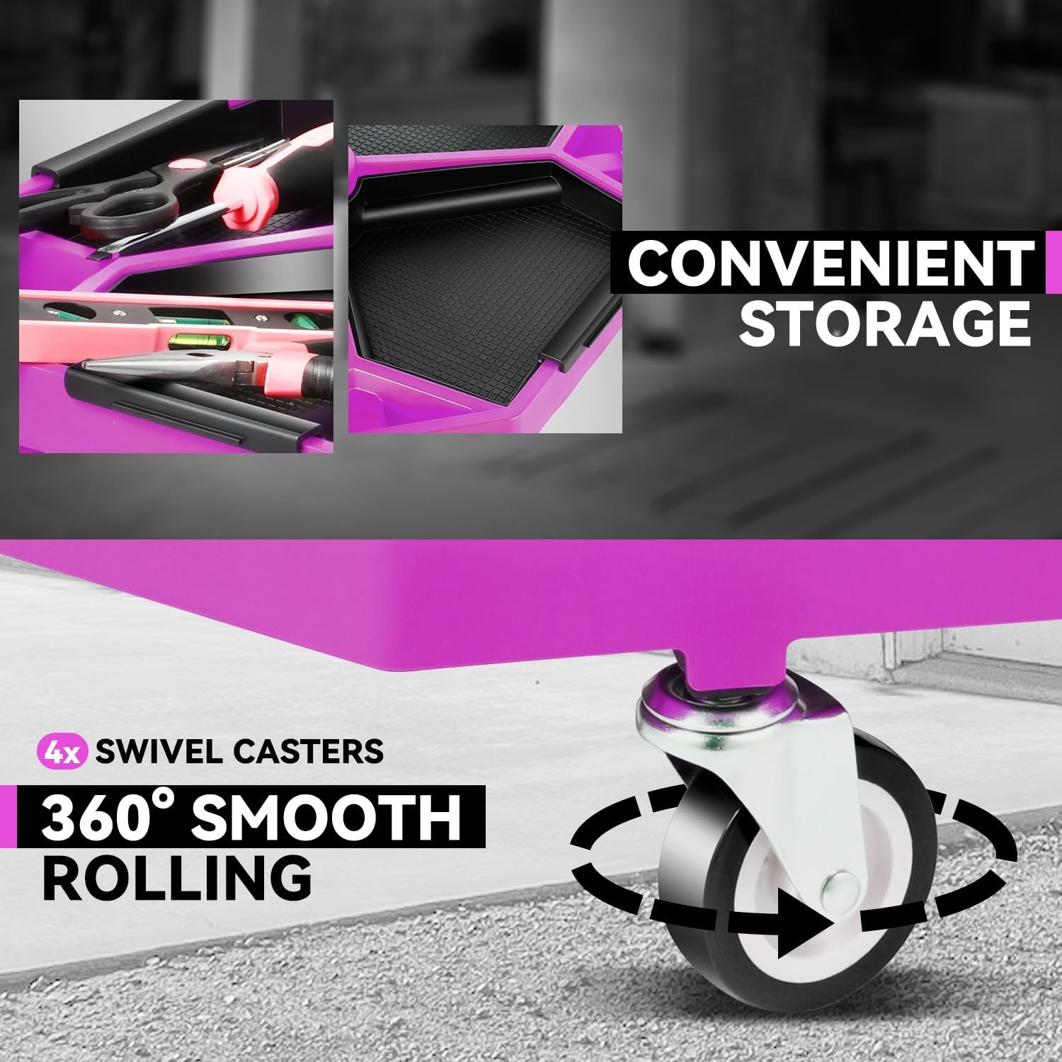 Auto Dynasty Mechanic Stool, Adjustable Rolling Pneumatic Creeper Garage Shop Seat with Tool Tray, 300 LBS Roller Seat for Workshop Auto Repair, Adjustable Height 15.7" to 21", Purple