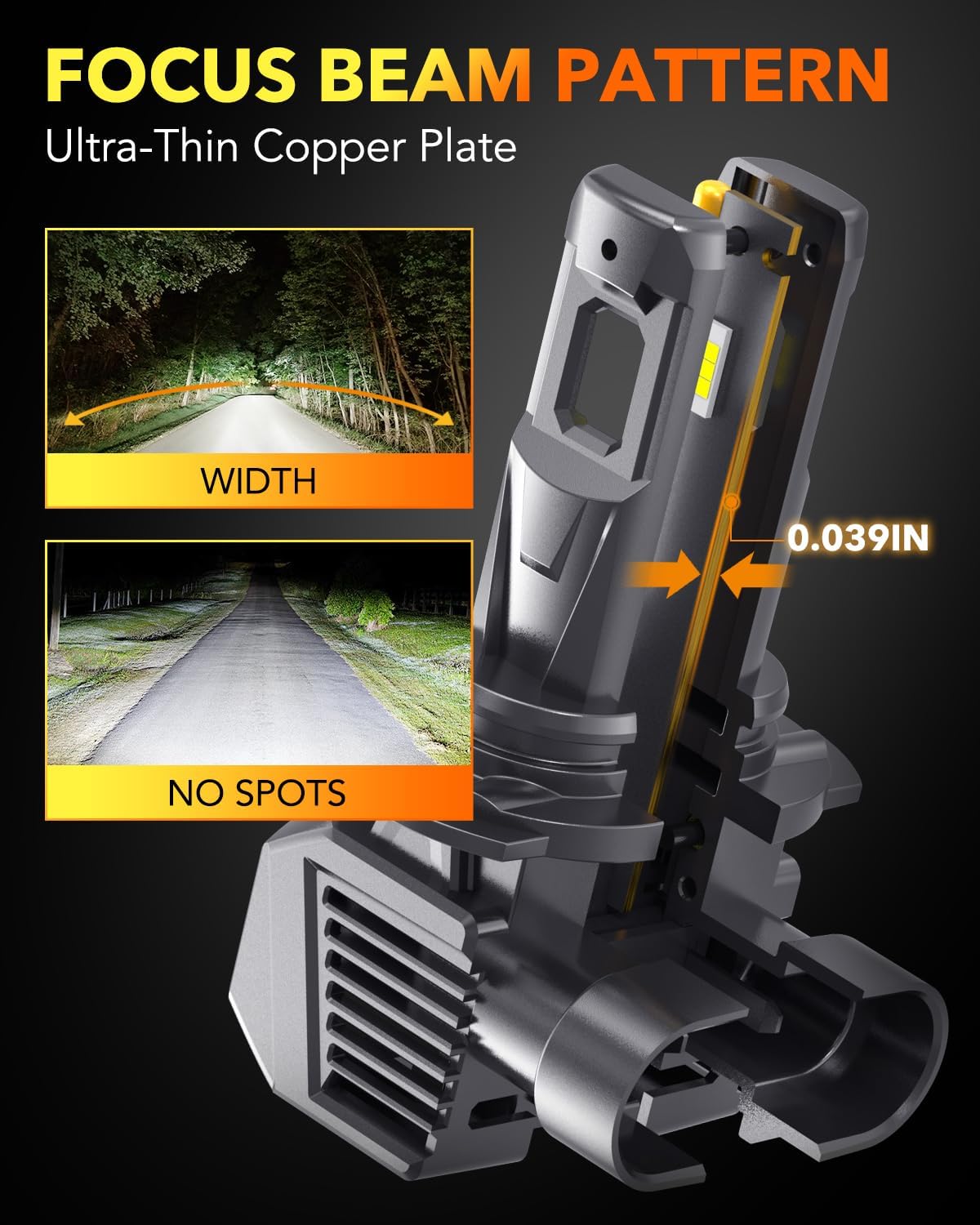 - Longer Lifespan: Built with a full aviation aluminum body and a high-speed 12000RPM silent cooling fan, these bulbs are engineered for superior heat dissipation. With an IP67 waterproof rating, they are suitable for use in any weather, ensuring durability and longevity