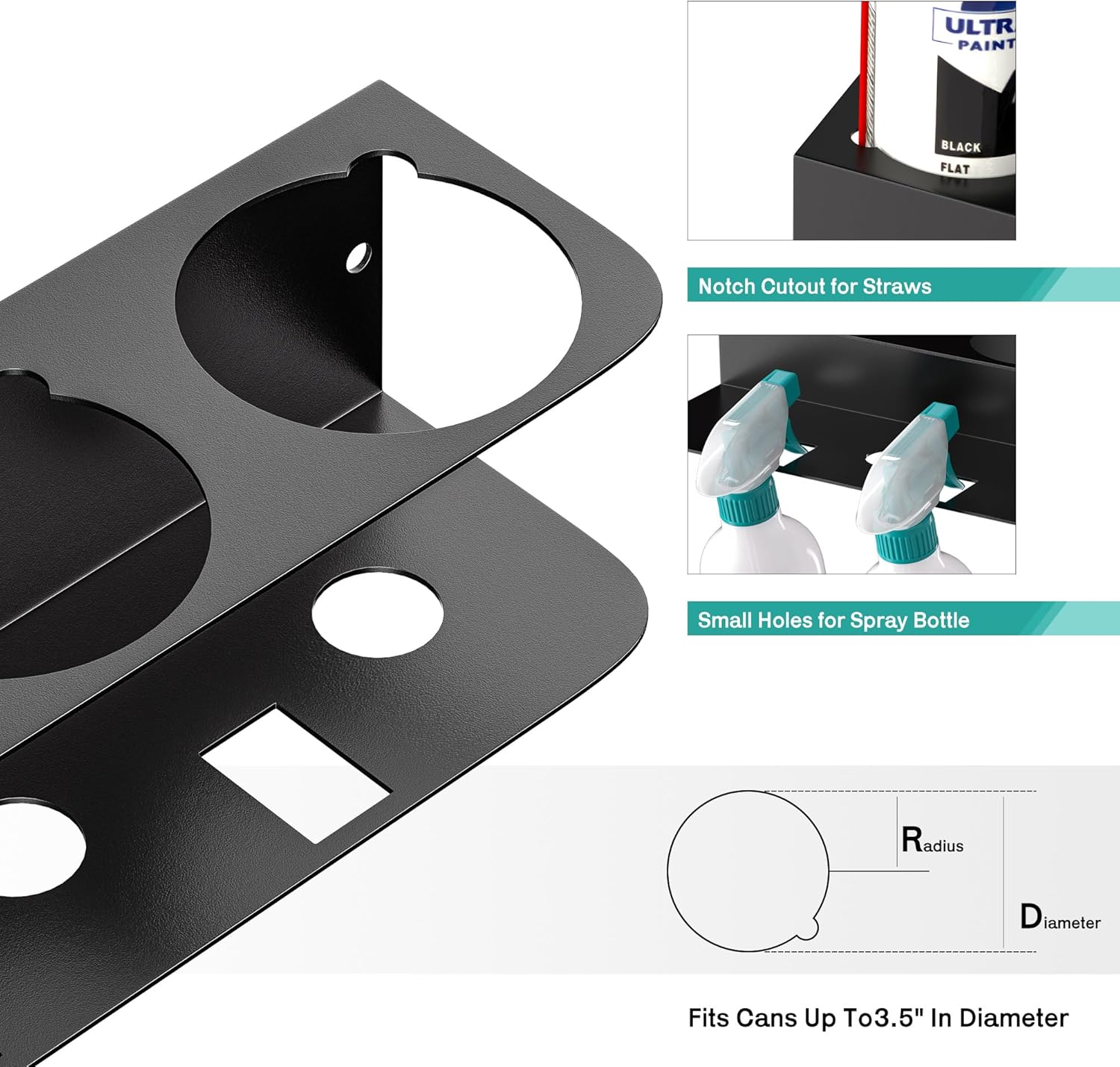 - STAY ORGANIZED: The package includes 2 spray bottle holders, holding up to 8 cans in total, keeping them visible, accessible, and neatly arranged—helping maintain a tidy space, reduce clutter, and boost work efficiency