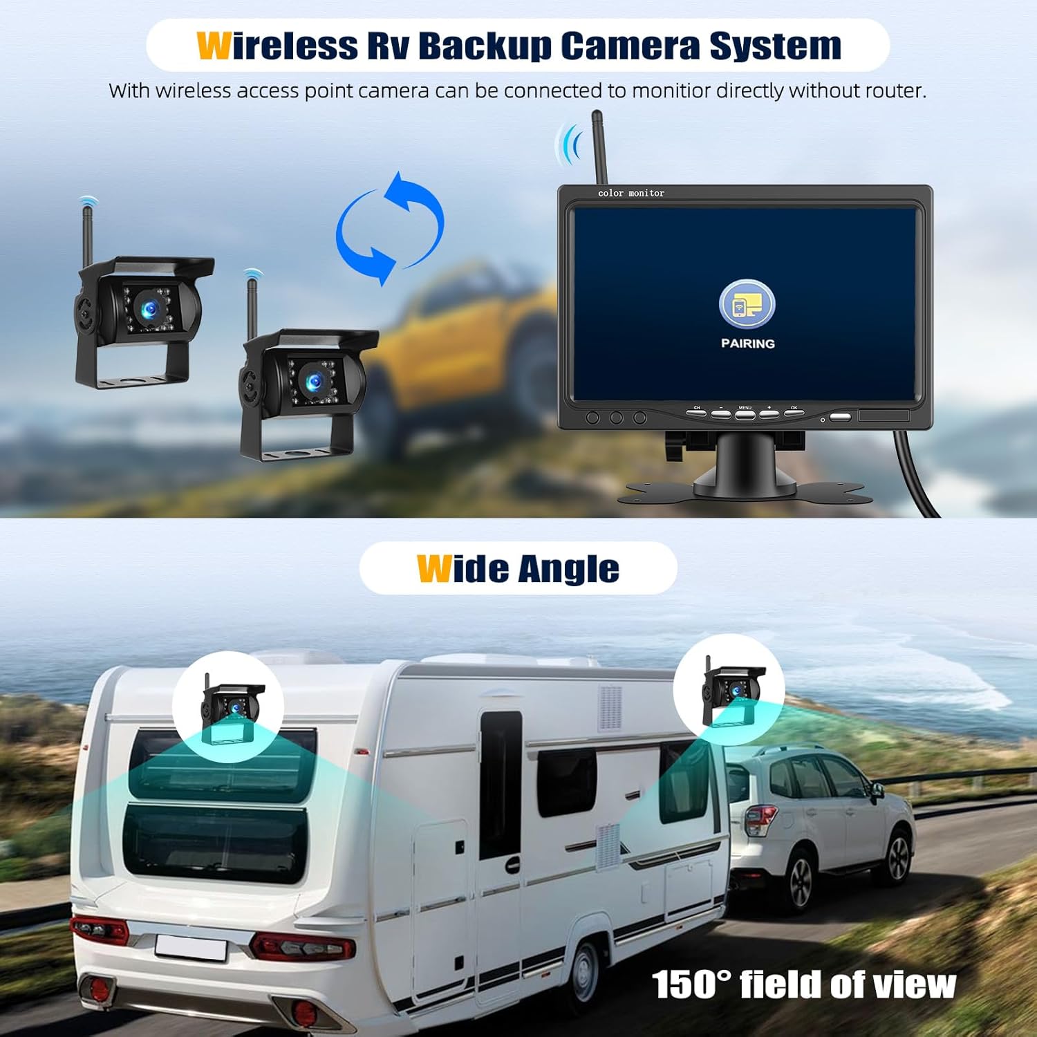 Wireless Vehicle Backup Camera System,7 Inch Reverse Camera Monitor for 2 Backup Cameras with IP69 Waterproof Night Vision Backup Camera Front Rear View Camera for Truck/RV/Van/SUV/Pickup