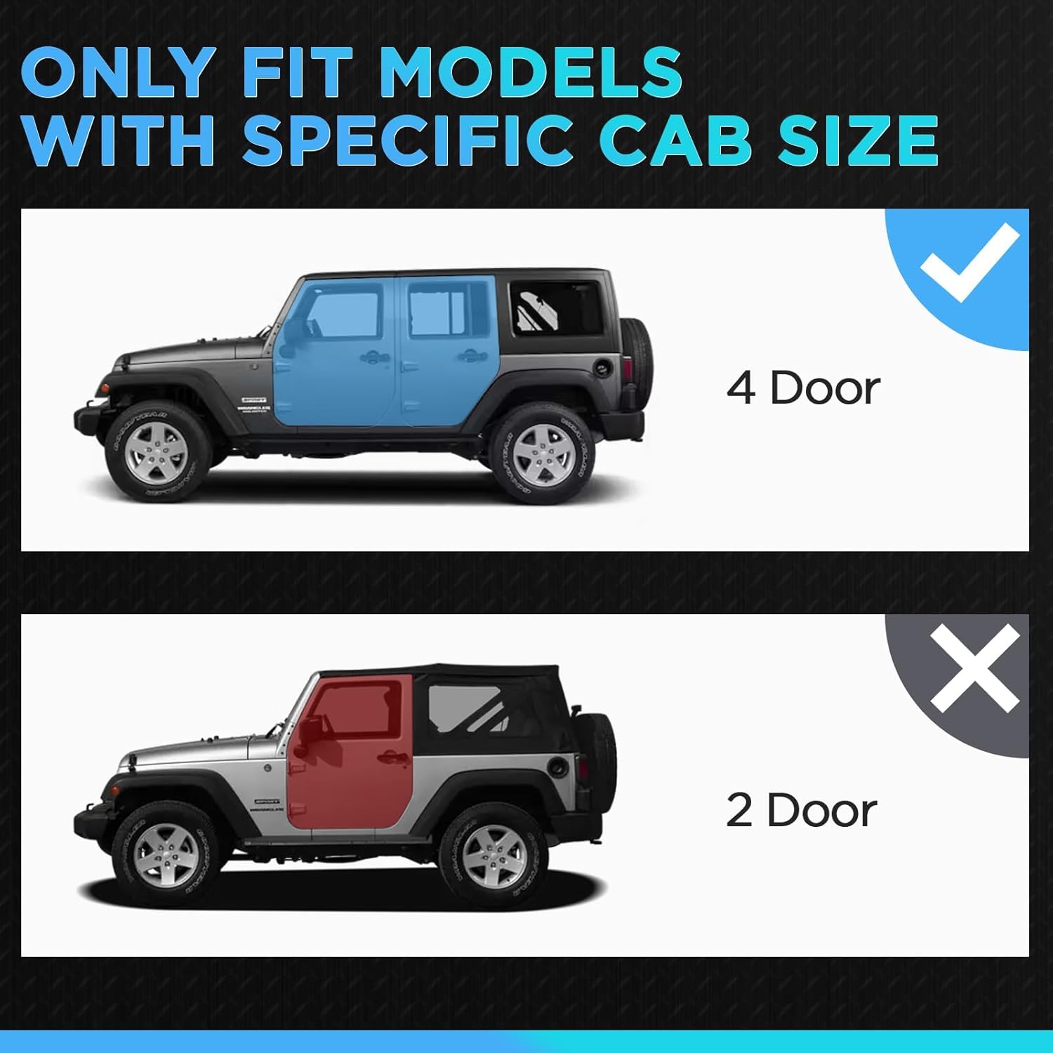 - Fitment: Truck running boards compatible with 2007 2008 2009 2010 2011 2012 2013 2014 2015 2016 2017 2018 Jeep Wrangler JK 4 Door.Ensure a perfect match with your vehicle, please confirm your car model and year before purchasing