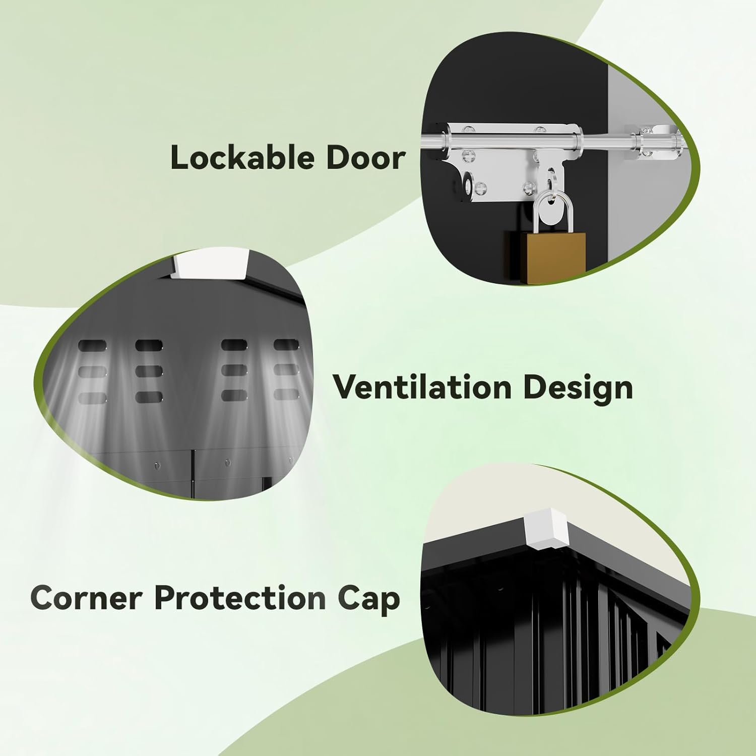 - Lockable Door and Vents:The lockable door provides security,keeps your tools away from being stolen,and avoids small animals from entering accidently;Two Top Vents for Better Airflow,Keeping the Space Cool and Odor-Free