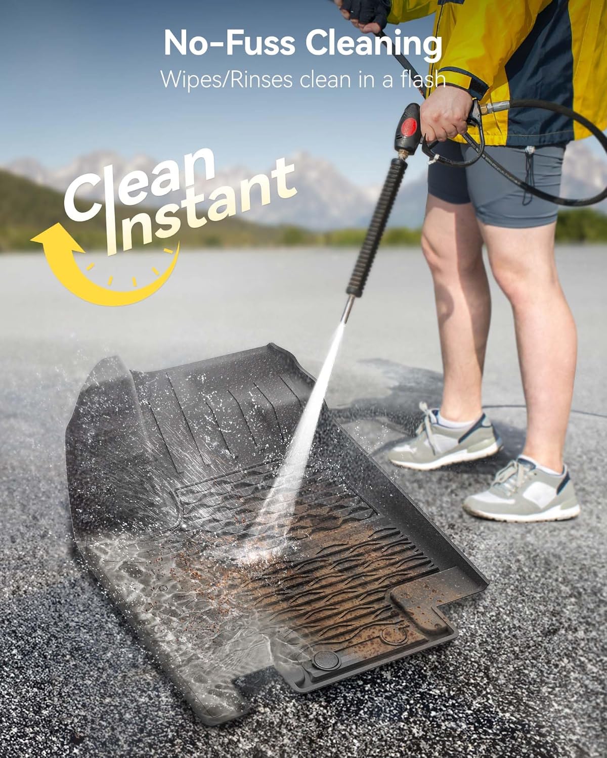 - EASY TO CLEAN & INSTALL: Our floor liners are easy to clean. No matter with dust, dirt or sand on the mats, just take several minutes wash off it with water or damp towel.Whether removing or installing, just snap the original clips together to securely hold it in place.Save your time and money