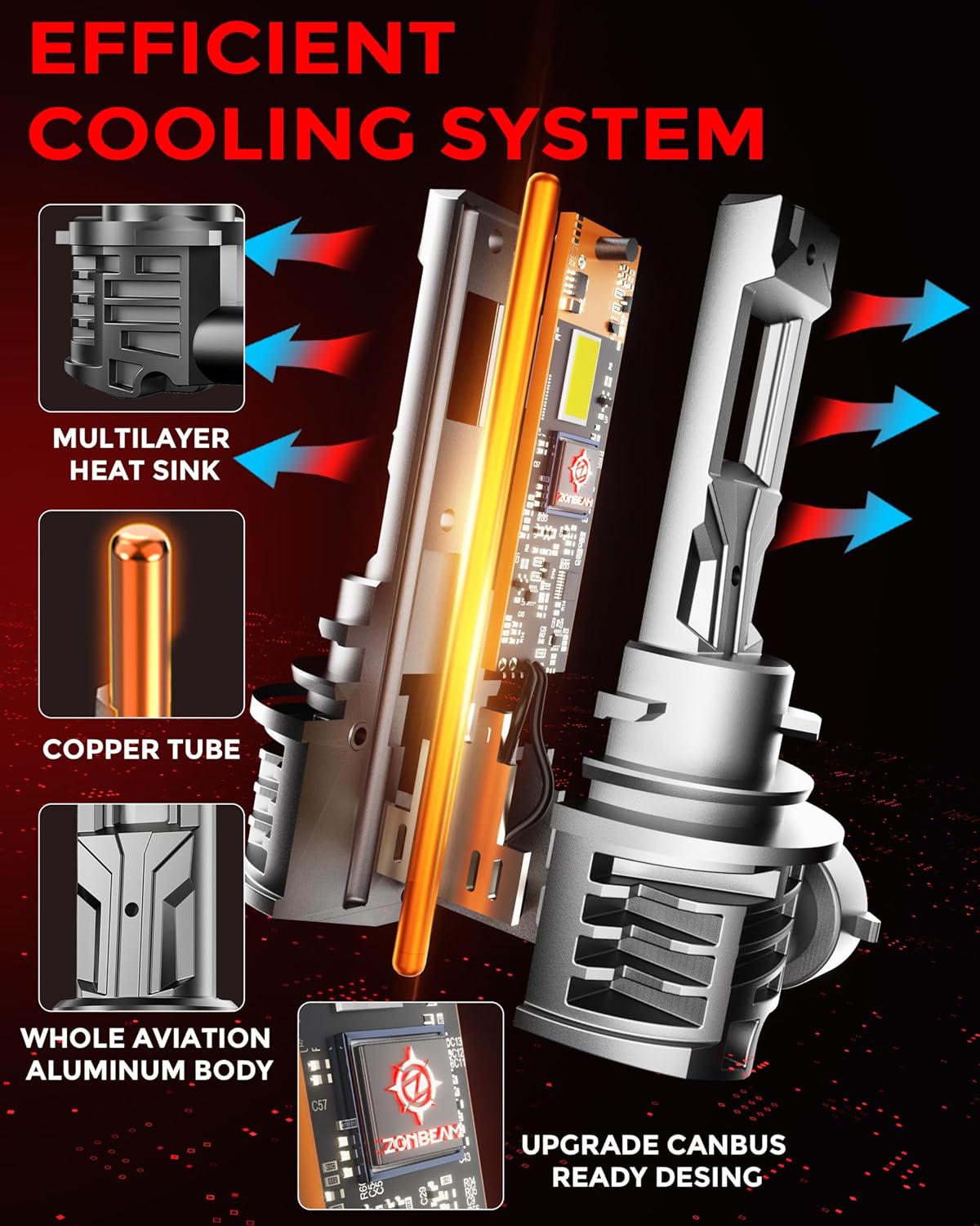 - [Super-Bright 80000LM] 2025 ZONBEAM led bulbs with 80000lm ultra-high lumen output per group compared to halogen and 6000k cool white light, illuminates all the details on the roadway at night, making night driving more comfortable and safer.