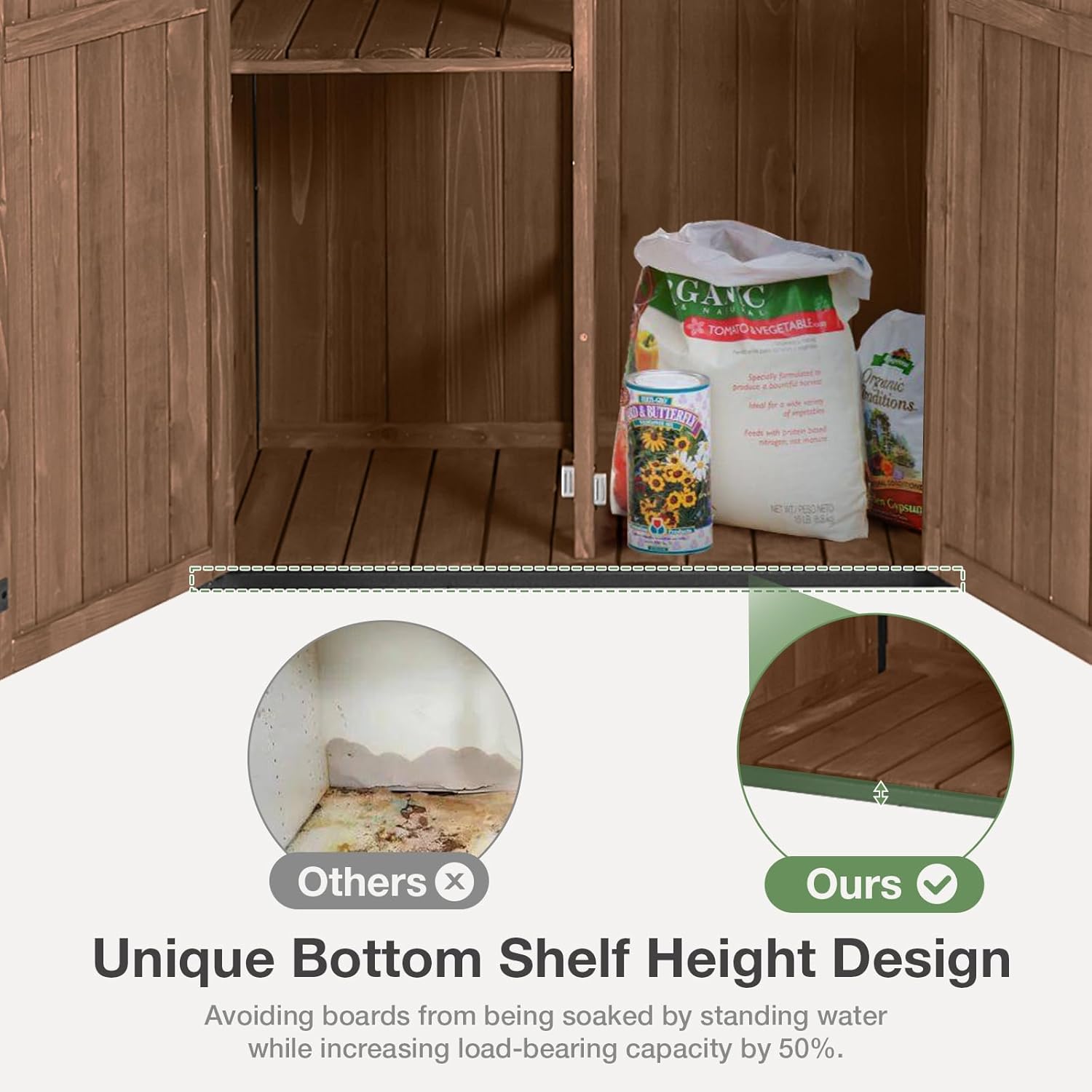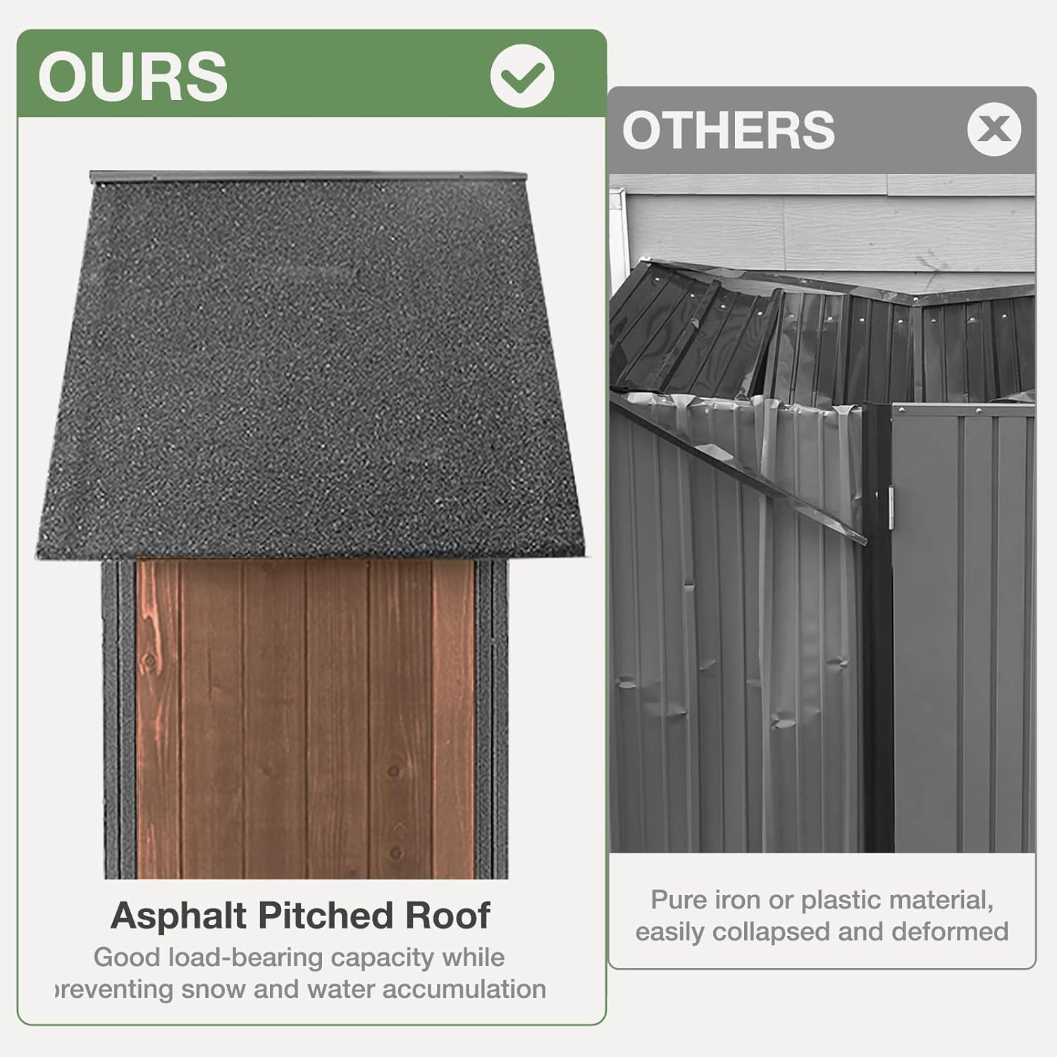 - đăWaterproof Designă: This storage shed features an asphalt peaked roof that protects against rain and snow simultaneously! The raised wood floor prevents water from seeping in and ensures that the storage space is dry and safe