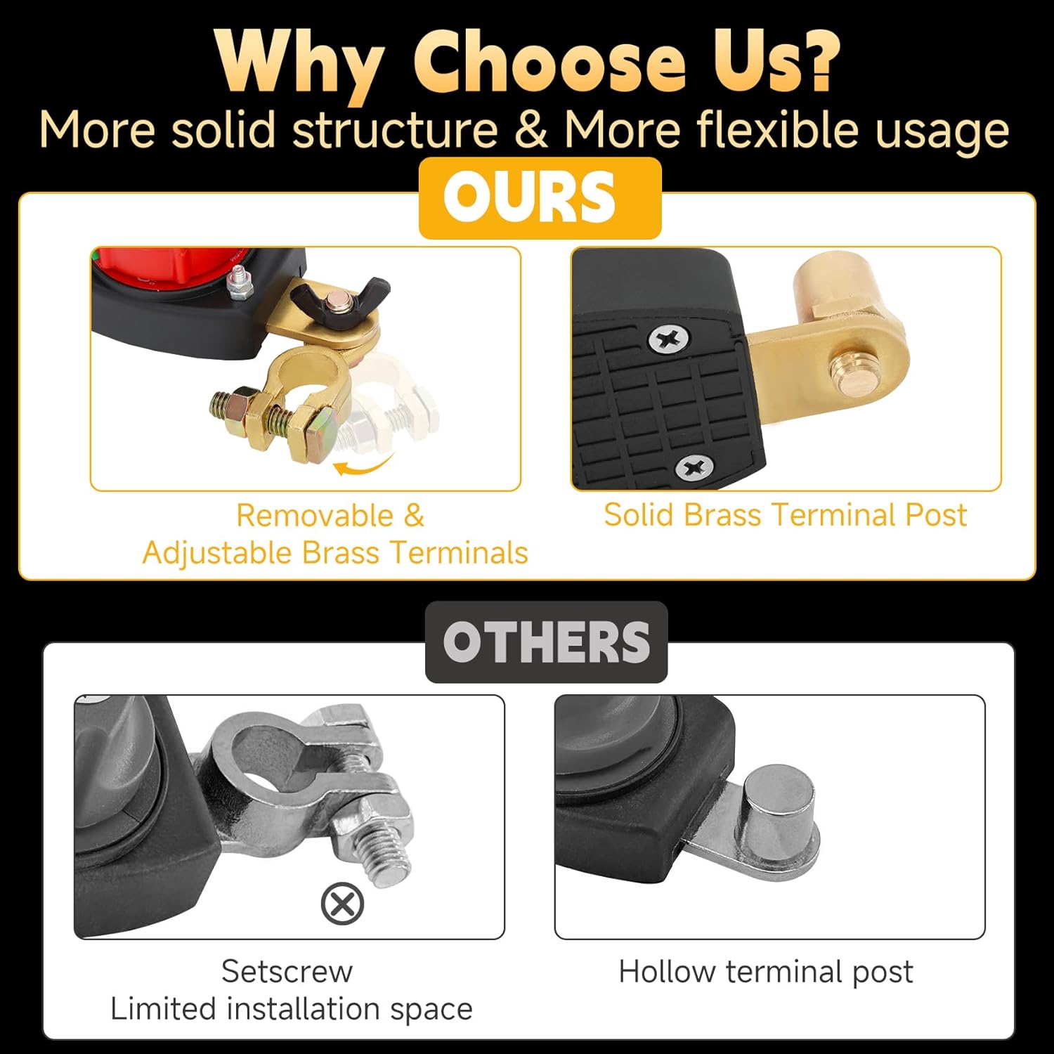 - Wide Application: Designed for isolating and securing 5-60V DC electrical systems. Can be used individually or ganged/locked with other switches. Ideal for: Cars, Marine Applications, Boats, RVs, Campers, Travel Trailers, Trucks, ATVs, UTVs, Battery Banks, and other electrical equipment.