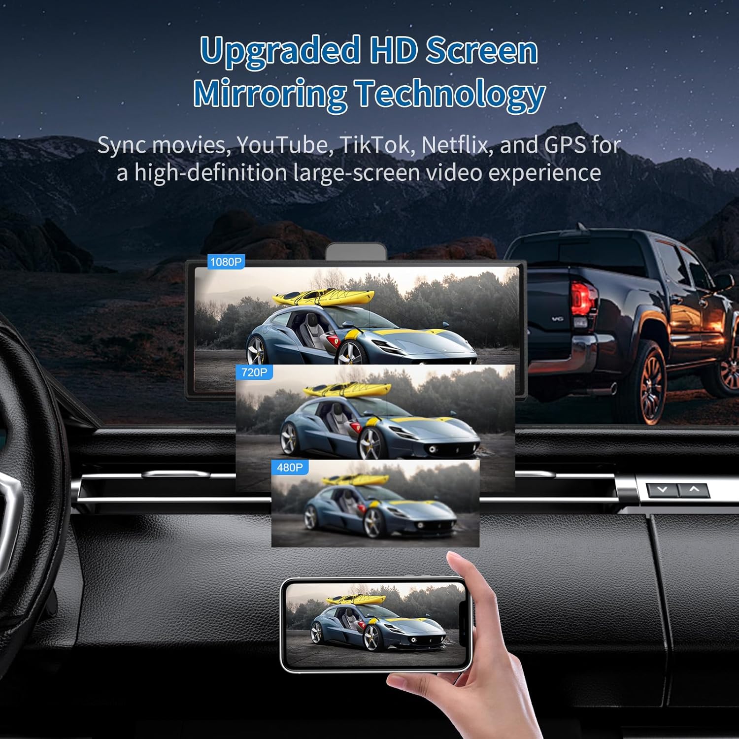 10.26" HD Wireless Android & Carplay Screen for Car, Portable Touchscreen Car Stereo with 4K Dash Cam, 1080P Backup Camera, Bluetooth, AUX/FM, Siri, Mirror Link, GPS Navigation