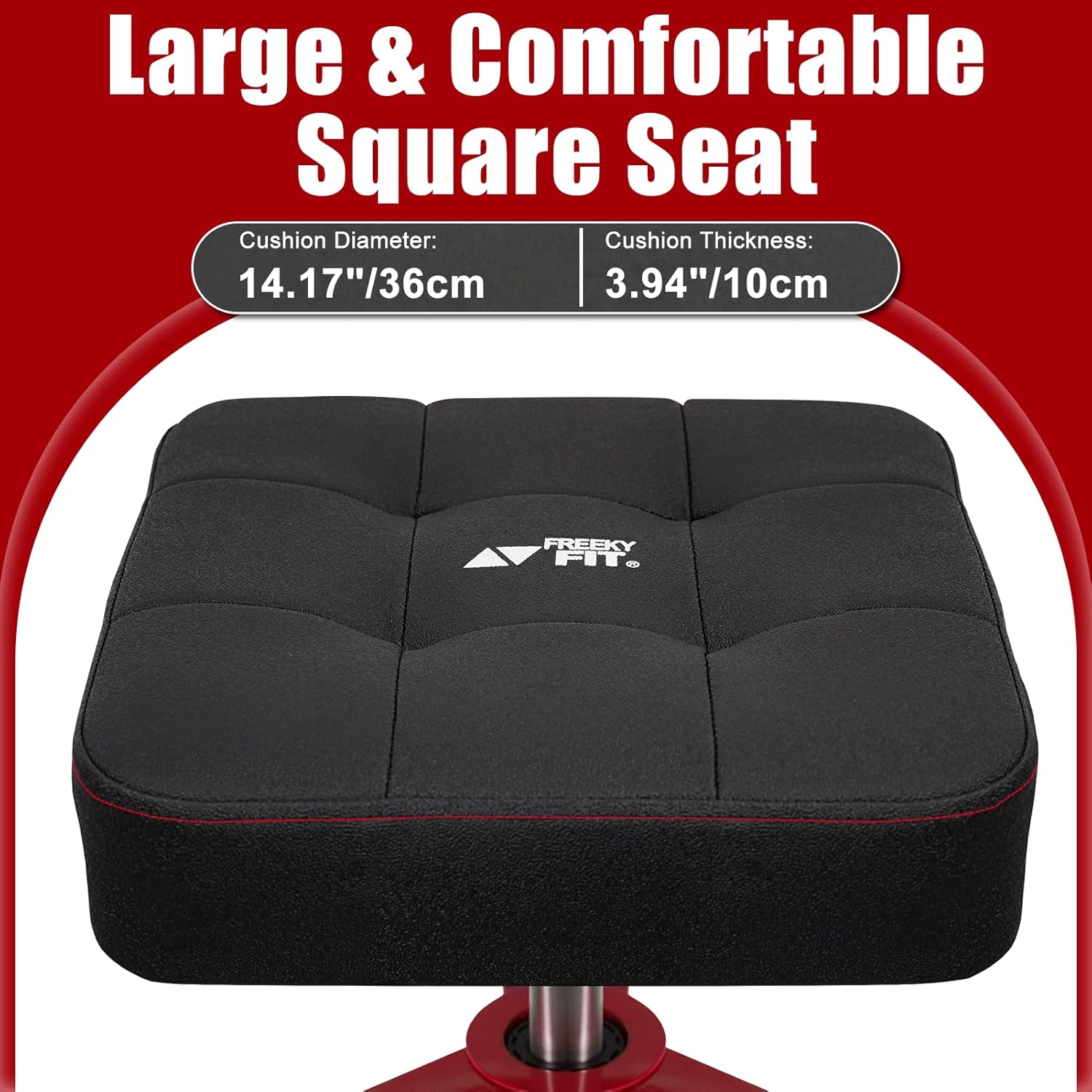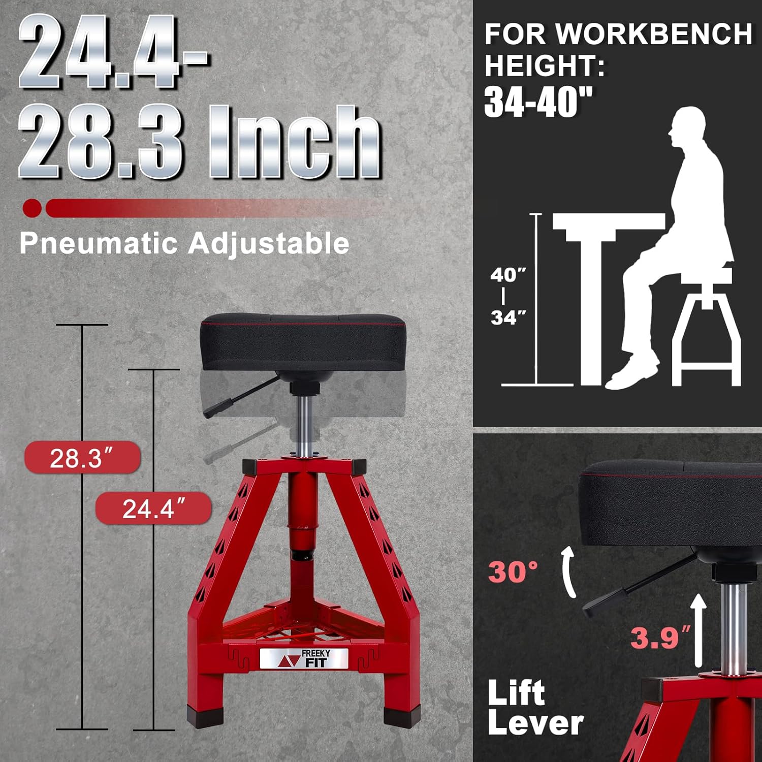 Adjustable Shop Stool,Garage Mechanic Stool Chair,Work Seat for Workshop, Adjustable Height, 360° Swivel Padded Square Seat,Tool Storage, 350 LBS Capacity, Heavy Duty, Red