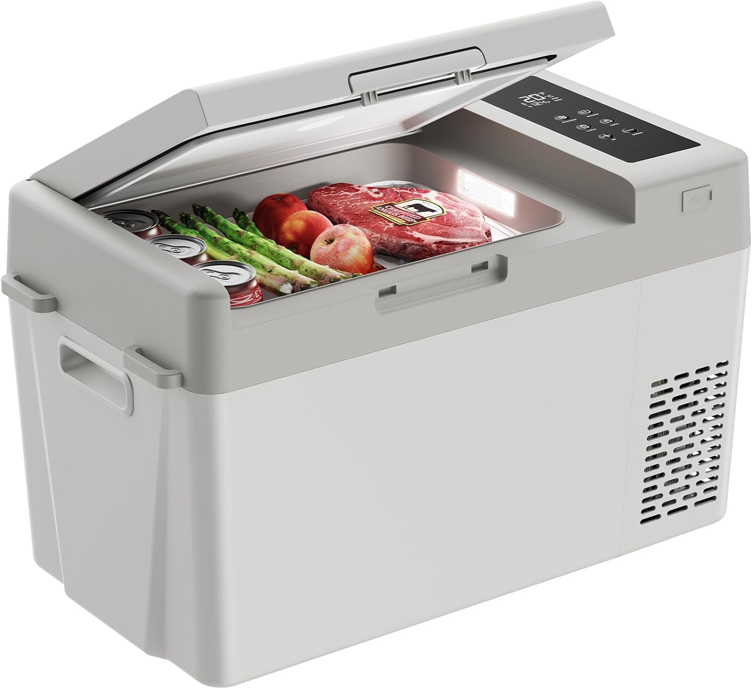 - Wide Temperature Range for All Types of Food:With a range of -4°F to +68°F, this portable freezer keeps meats, ice cream, and frozen vegetables deep-frozen, while your fruits, dairy, and beverages stay cool and fresh. Perfect for storing a variety of foods, whether on a road trip or at the campsite. The car fridge is a reliable companion for all your food storage needs.