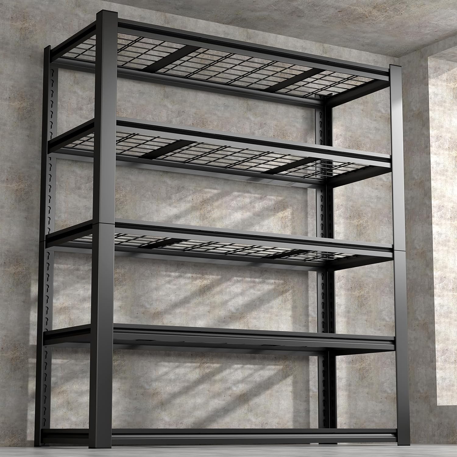 - ăSturdy and DurableăThis metal shelves has thickened legs and is made of high-quality metal. Each shelf is equipped with extra reinforcement to prevent shaking, can withstand up to 600 pounds, and the total load-bearing capacity is 3000 pounds, providing you with a perfect storage experience.