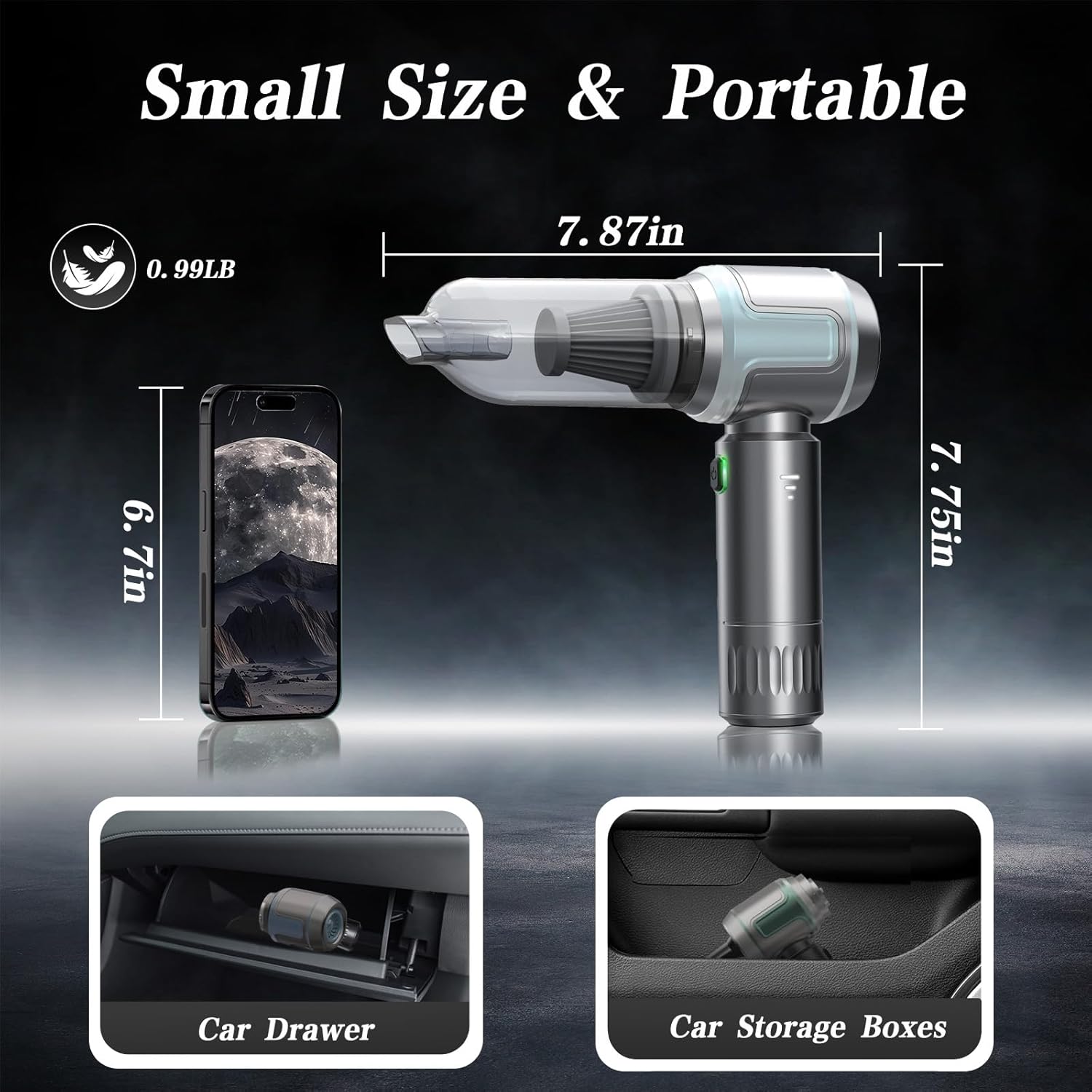 :Charges fully in 3 hours via Type-C port, compatible with most smartphone chargers. The compact 7.87"x7.75" (0.99lb) design fits glove compartments. Additionally, the vacuum cleaner for car comes with excellent customer support to ensure timely resolution of any issues, giving you peace of mind with your purchase and continuous, reliable performance wherever you use it.