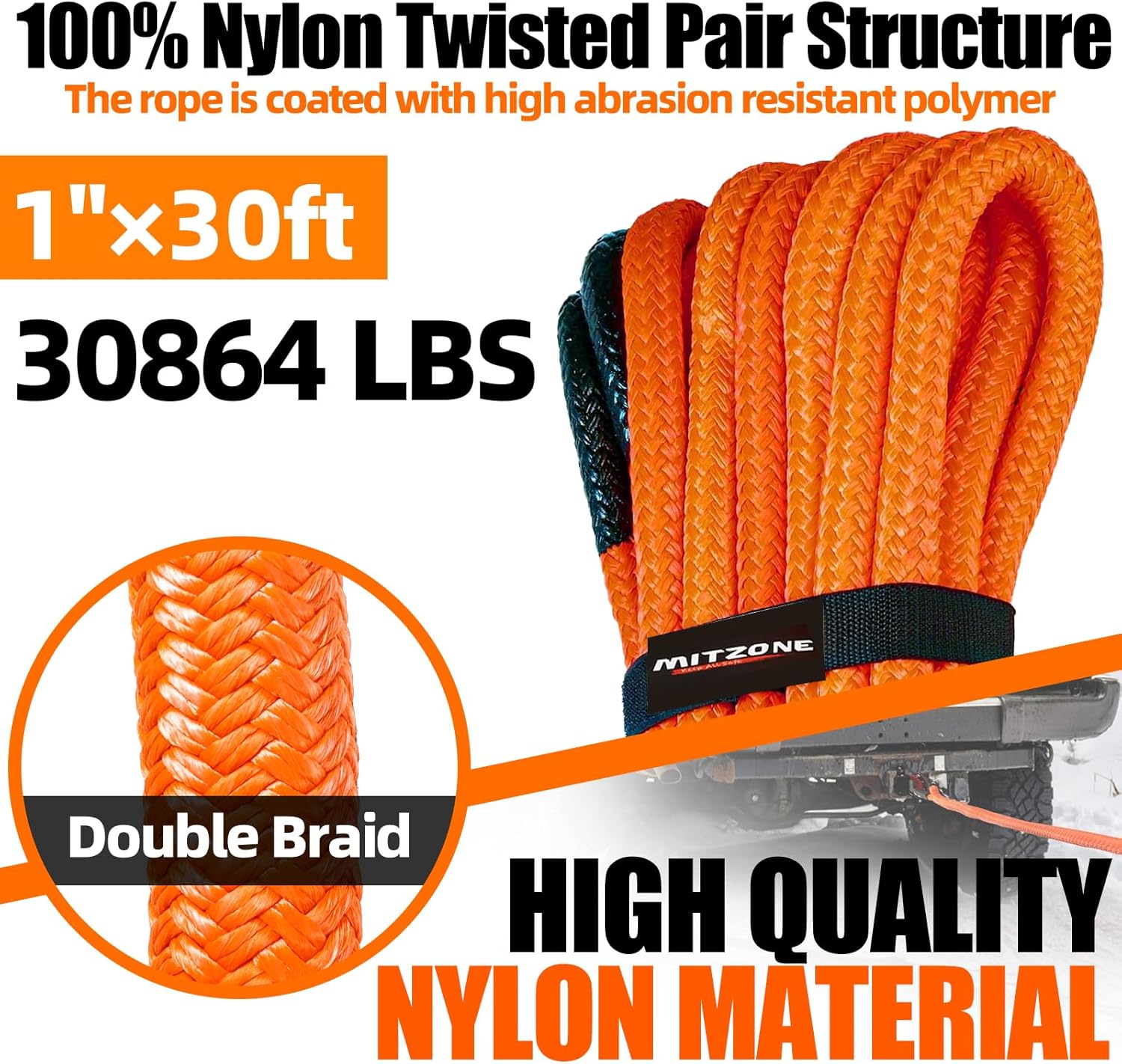 MITZONE Recovery Tow Strap,Heavy Duty Tow Strap Recovery Kit,Car Vehicle Heavy Duty Recovery Rope 30864 lbs for Diesel Trucks,SUV, ATV,Backhoe, Excavators,Ring Shackles,Storage Bag