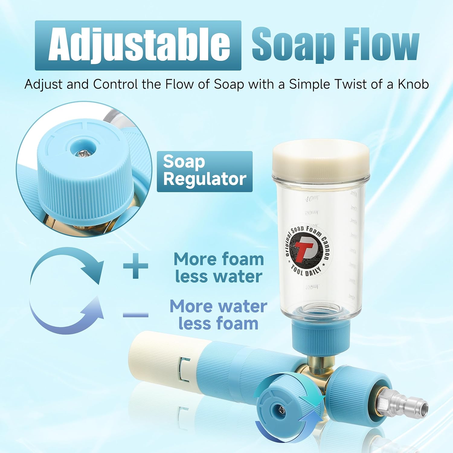 Tool Daily Foam Cannon with Dual Connector Accessory, Original Soap Cannon for Pressure Washer, 5 Power Washer Nozzle Tips, 1/4 Inch Quick Connect
