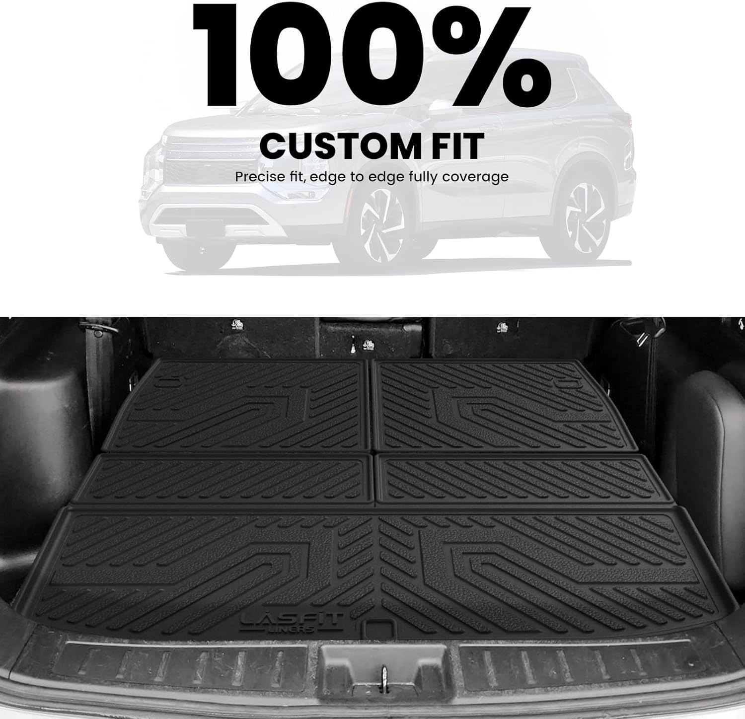 LASFIT Backrest & Cargo Mat for Mitsubishi Outlander 2022-2025 (Not Fit PHEV or Sport Models), Custom Fit All-Weather TPE Rubber Trunk Mat for Mitsubishi Accessories, Waterproof, Easy to Clean, Black