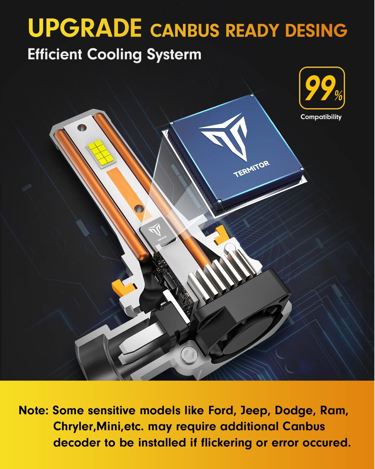 - 【Universal Fit for Most Vehicles】The H11 and 9005 bulbs combo features next-generation smart decoding technology and an upgraded driver system.H11 LED and 9005 LED ensure seamless compatibility with over 99% of modern vehicles. These CANbus-ready bulbs automatically prevent error messages, flickering issues, and electromagnetic interference. Some sensitive vehicle models may require an additional CANbus decoder. Our technical support team is always available to assist with compatibility questions.