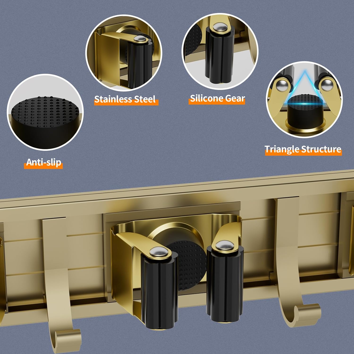 - One-Handed Push: It's easy to install, and it's easy to take and put back cleaning items. Non-slip grip locks secure tools like brooms and dusters with a one-handed push